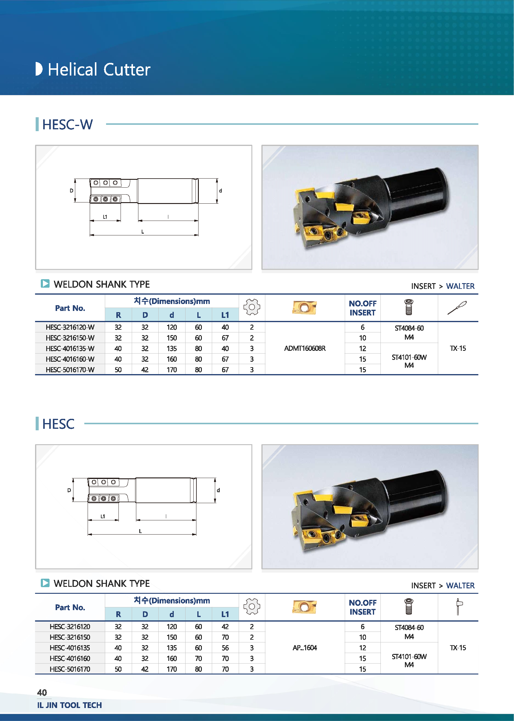 90°엔드밀 커터(2코너,헬리컬) HESC..16/ IL-JIN