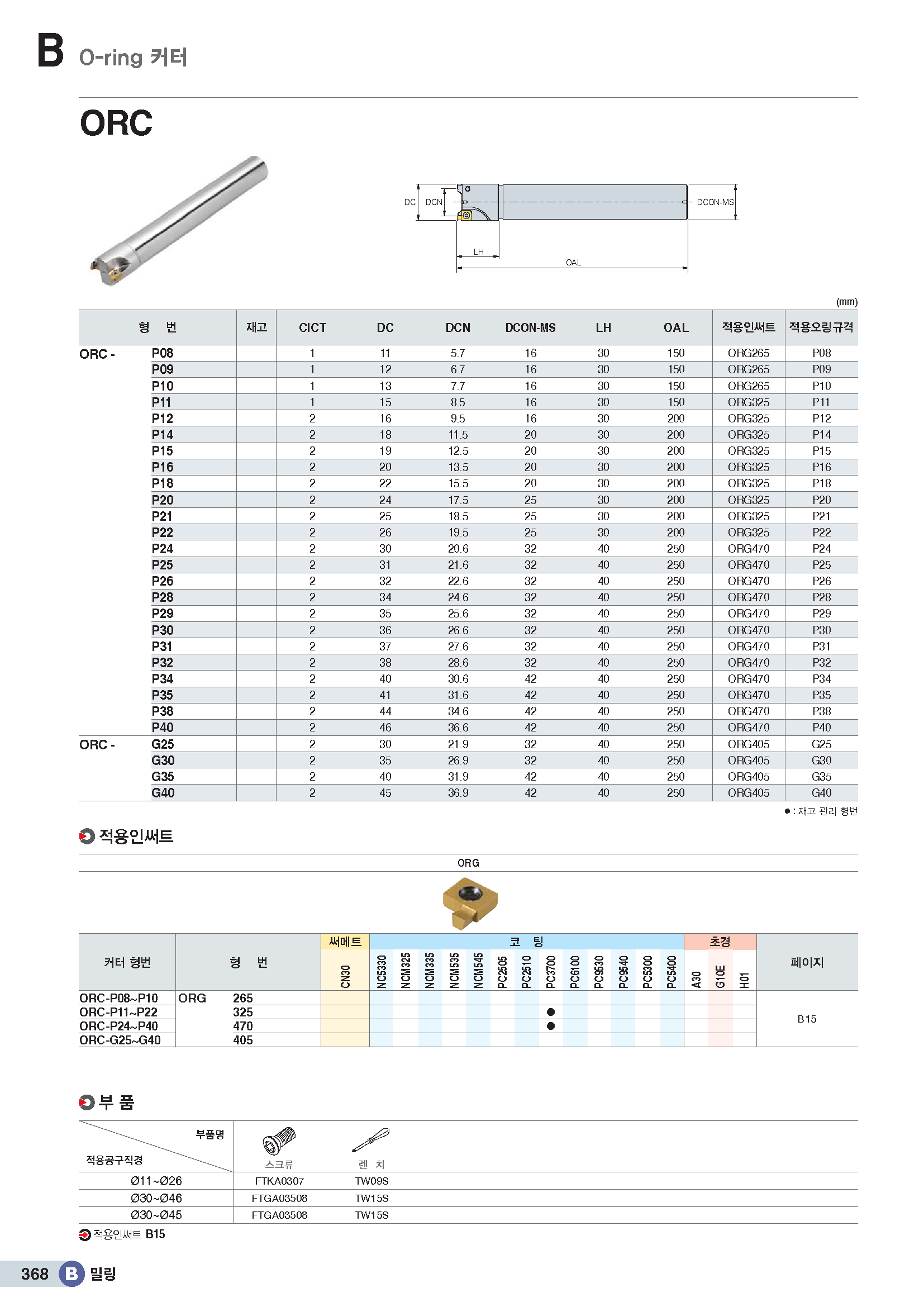• 상품명 오-링(O-Ring) 커터 인써트/ ORC-../강용