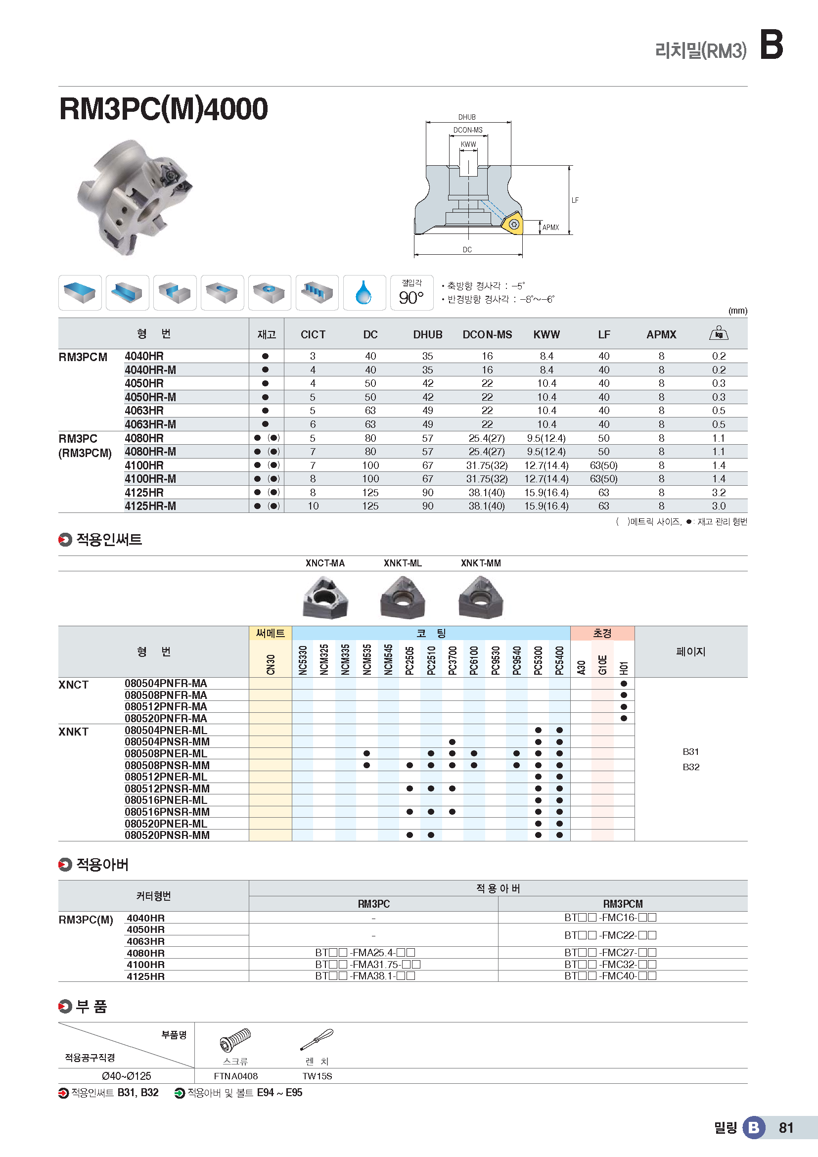 90°페이스밀 커터(3코너) RM3PC□4../ KR