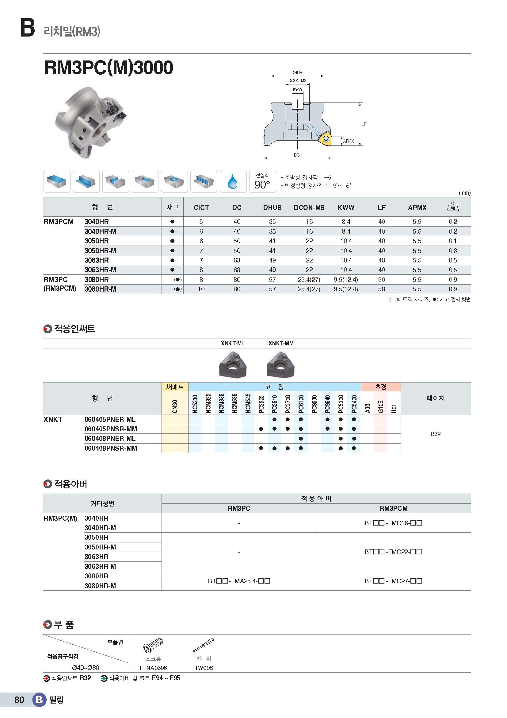 90°페이스밀 커터(3코너) RM3PCM3../ KR
