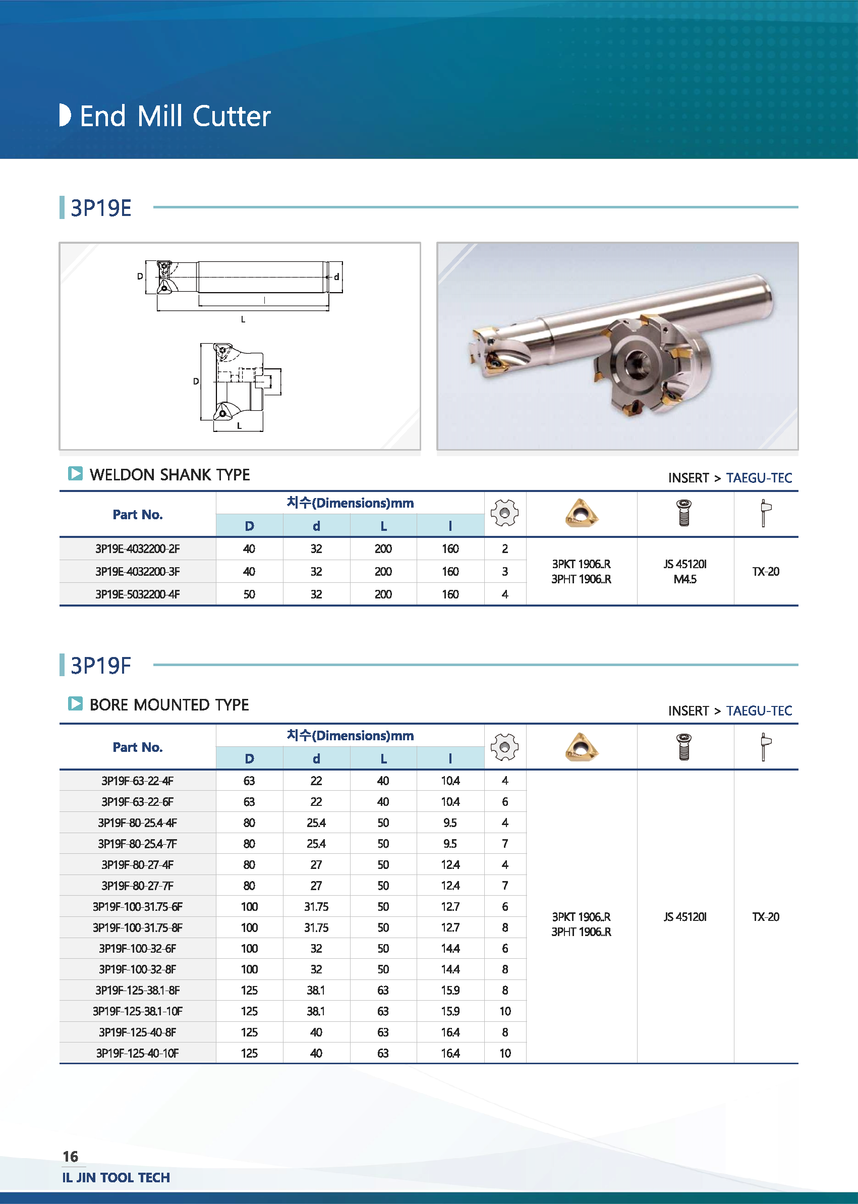 • 상품명 90°엔드밀 커터(대구텍 3PKT0603..) 2FxD16xS16