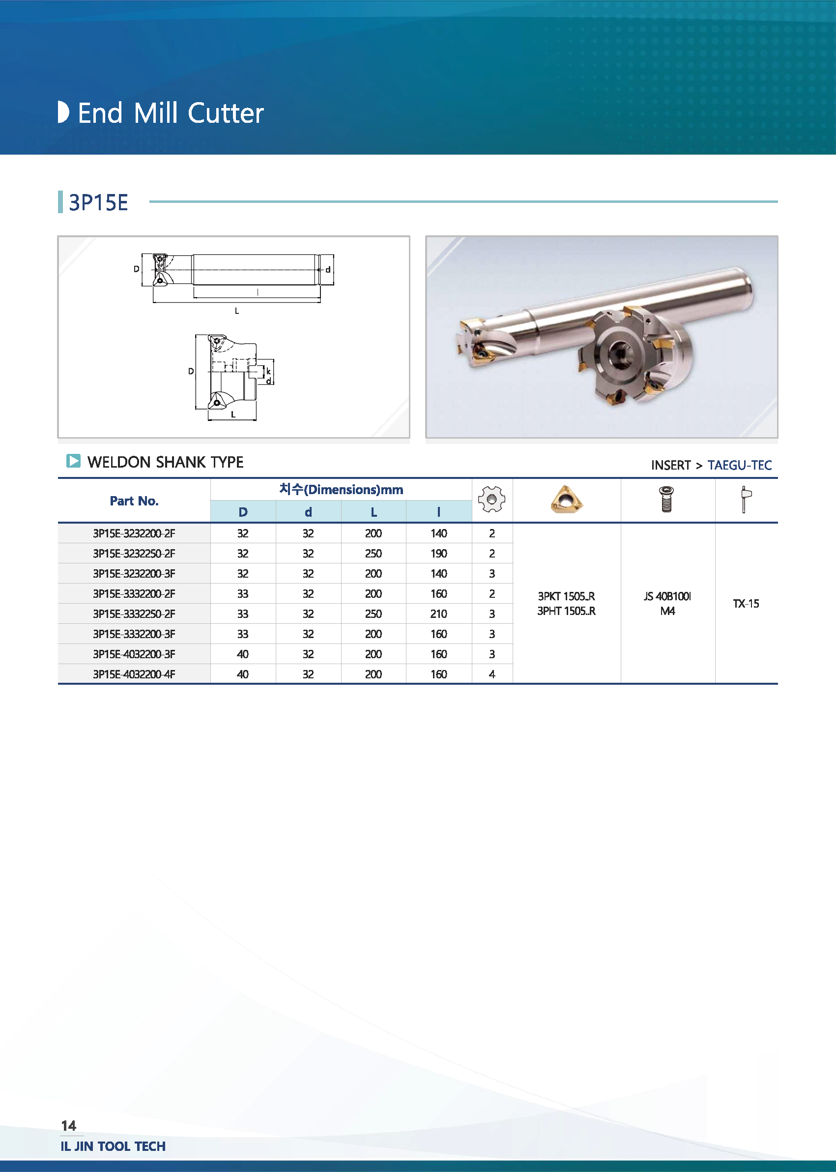 90°엔드밀 커터(3코너) 3P..E-../ IL-JIN