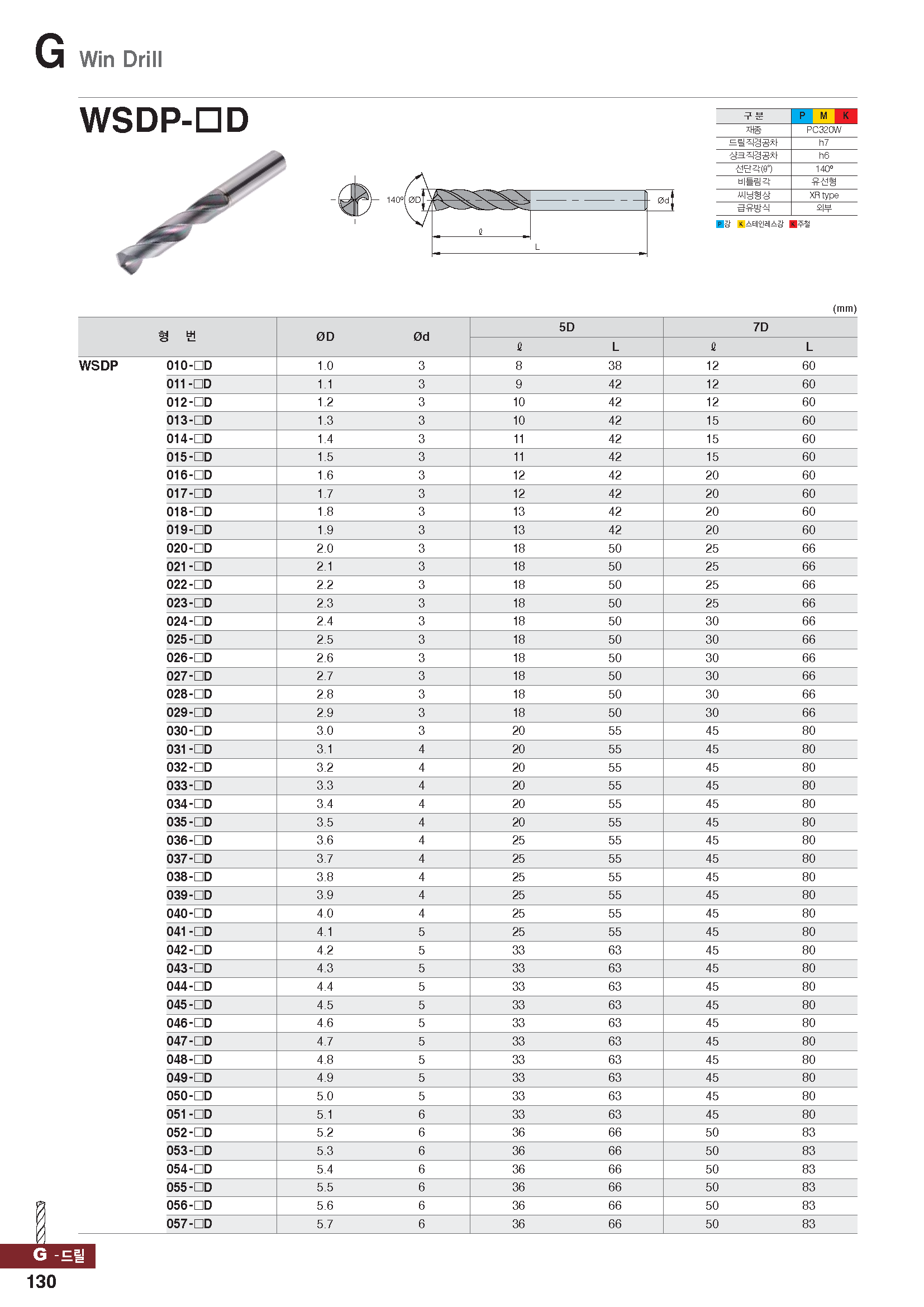 원-드릴(초경코팅,P,M,K)/ 7x D5.0x45/80-S5 |
