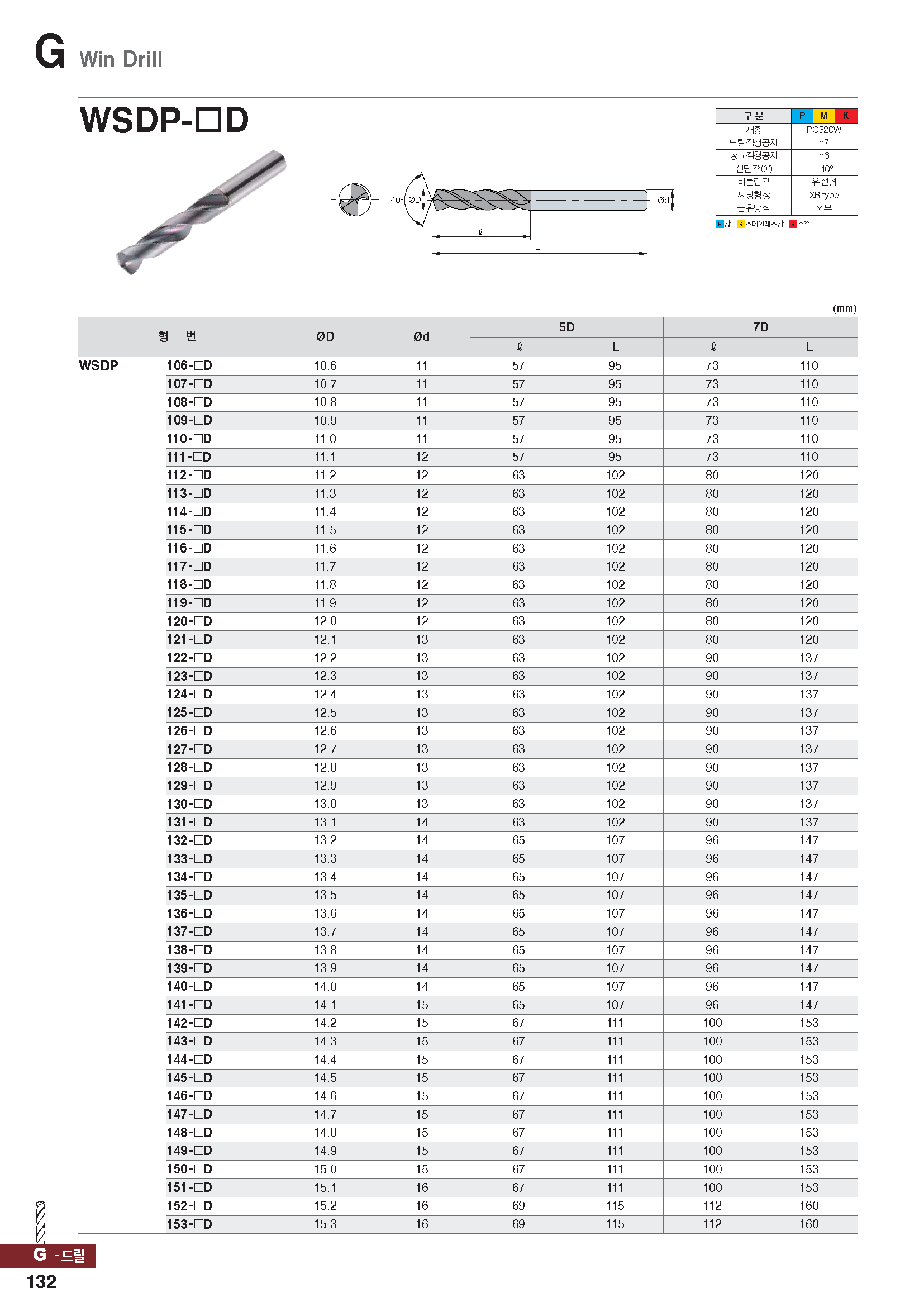 원-드릴(초경코팅,P,M,K)/ 7x D15.5x112/160-S16 |