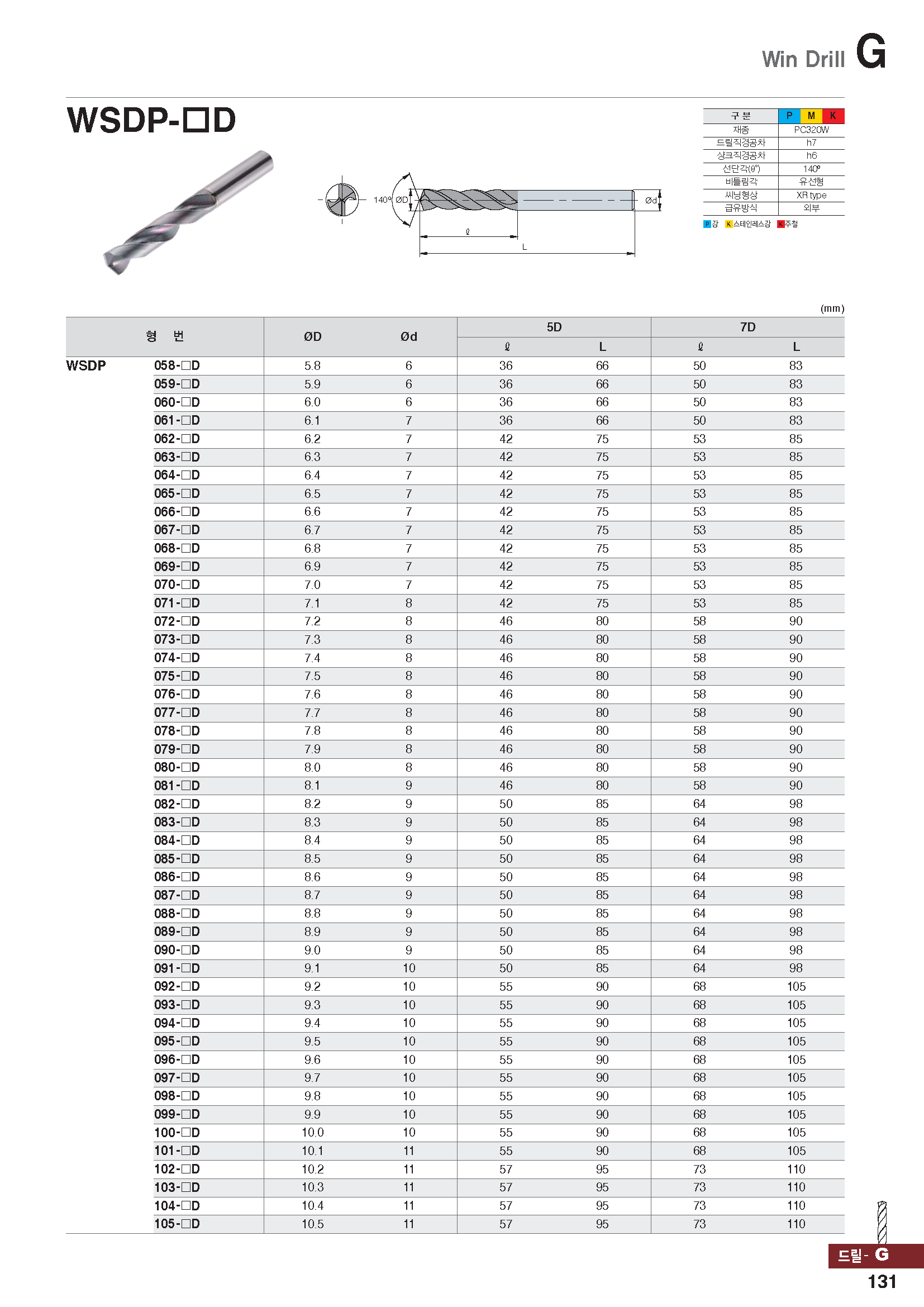 원-드릴(초경코팅,P,M,K)/ 7x D5.1x45/80-S6 |