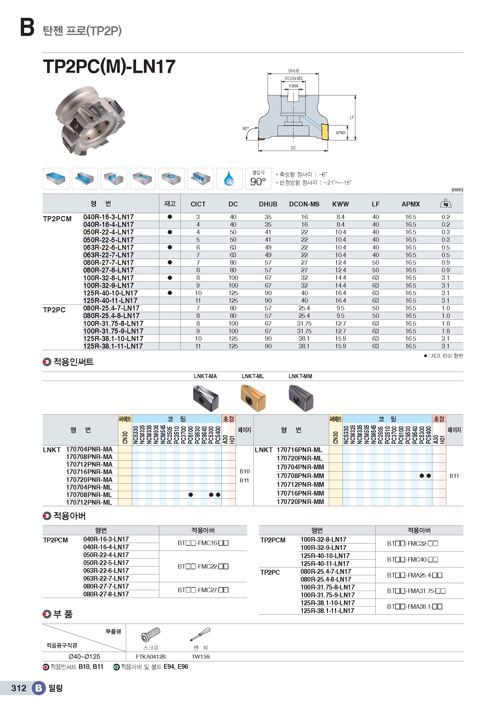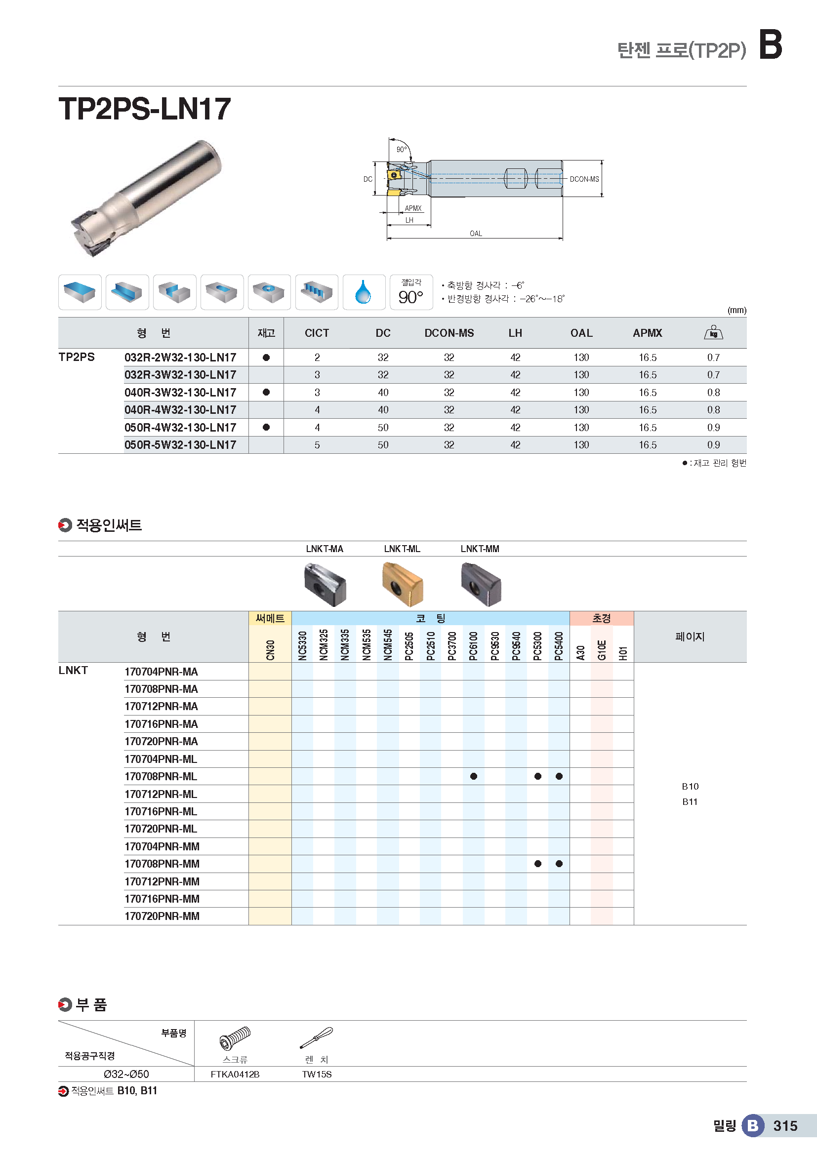 • 상품명 탄젠프로밀 90°커터 인써트(2코너)/ TP2PC../범용