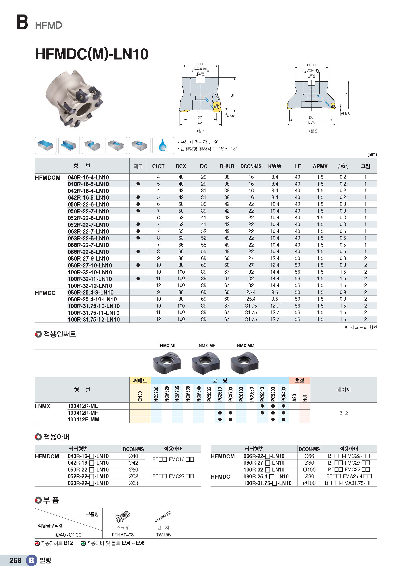 • 상품명 하이-피드밀(4코너) 페이스밀 커터/ LNMX06../ 내경16