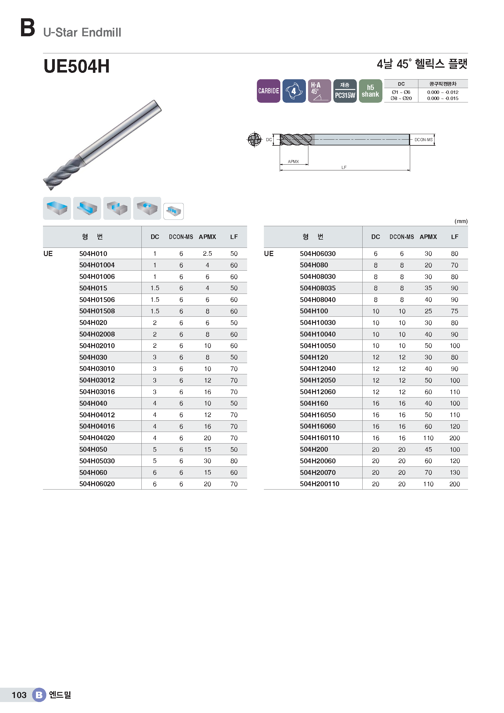 U-Star 4F H45°Flat EM/-HRC50 (1*4*60*S6) |