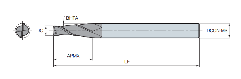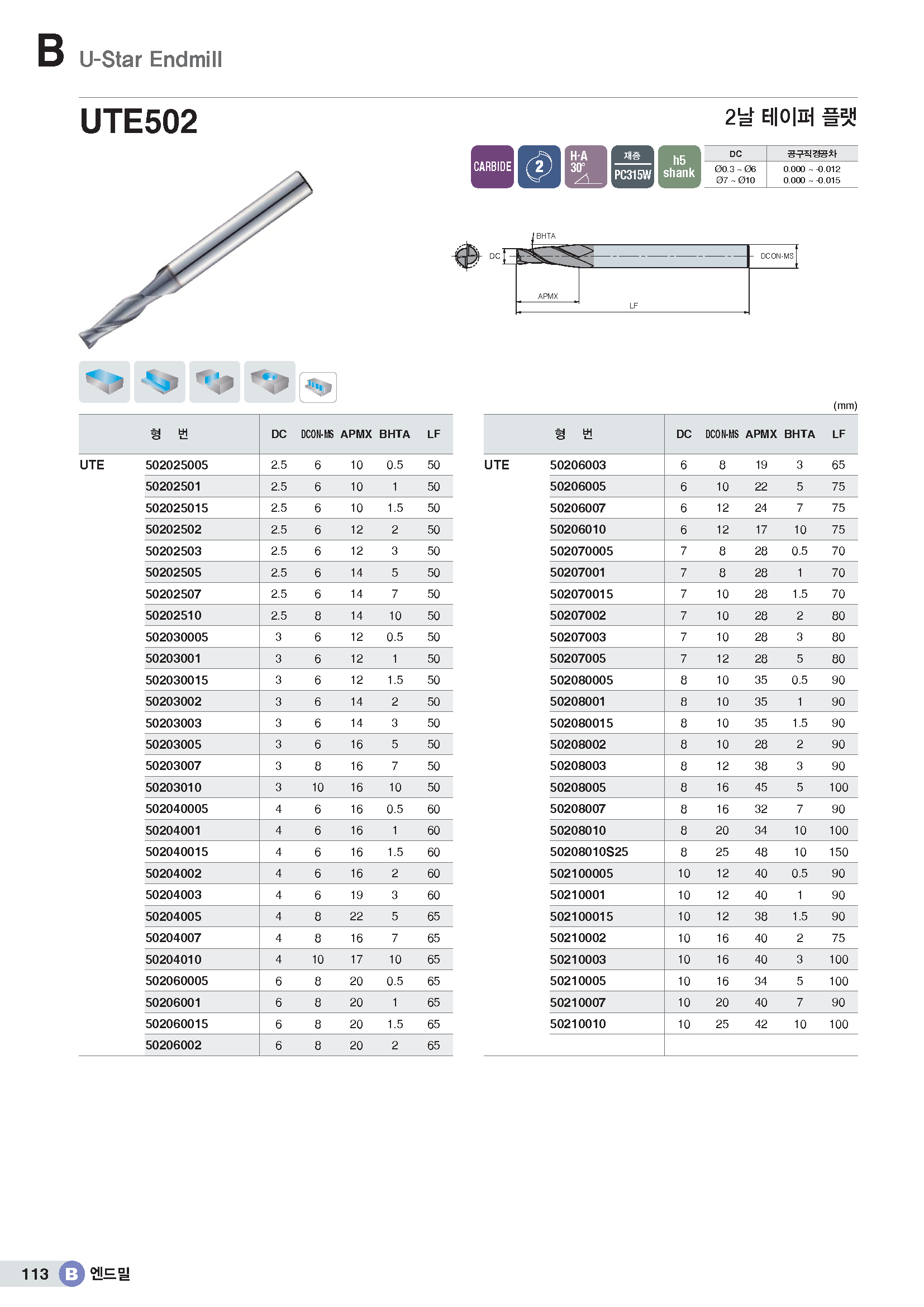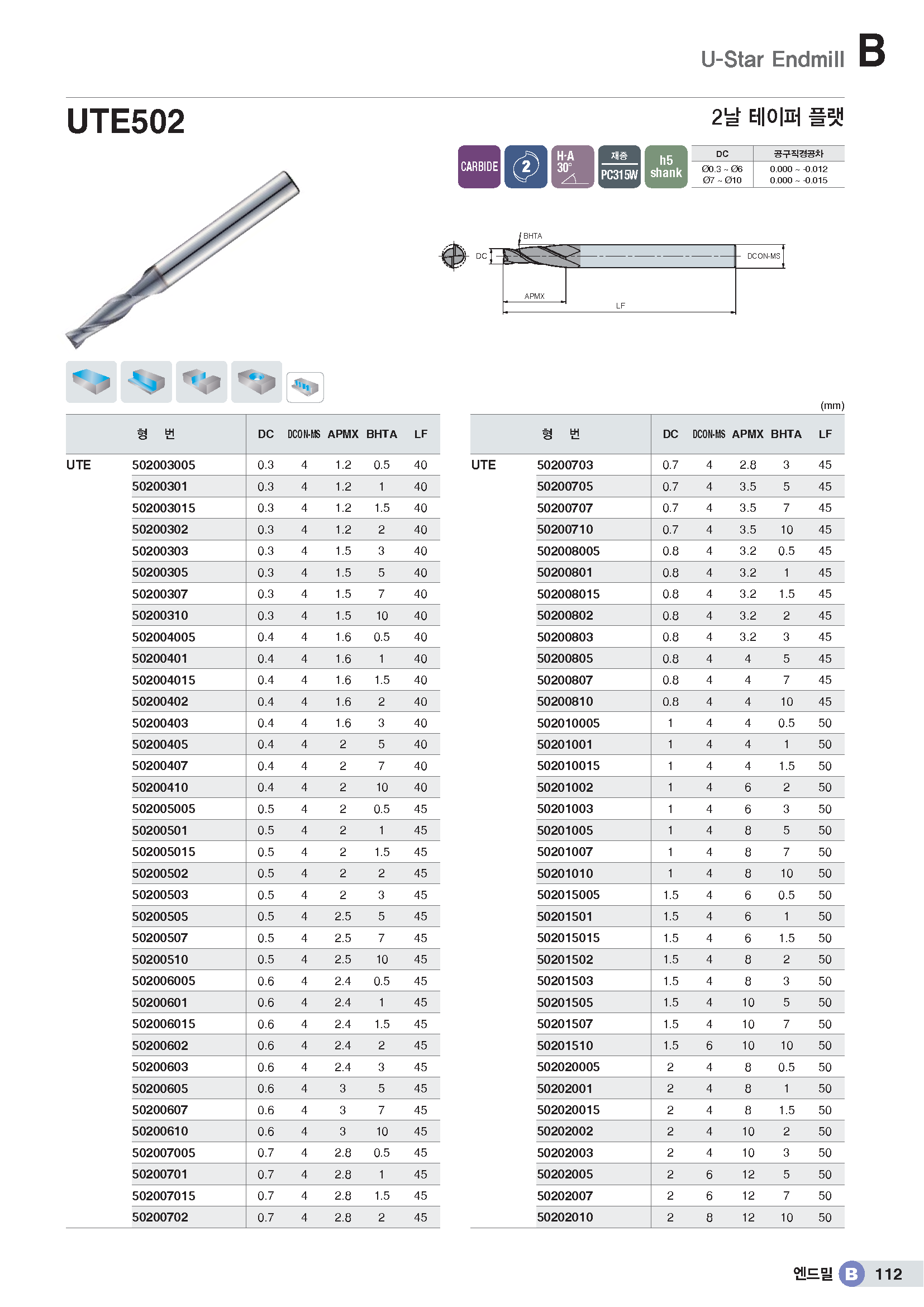 2날 범용 테이퍼 플렛 엔드밀 UTE502../ KR