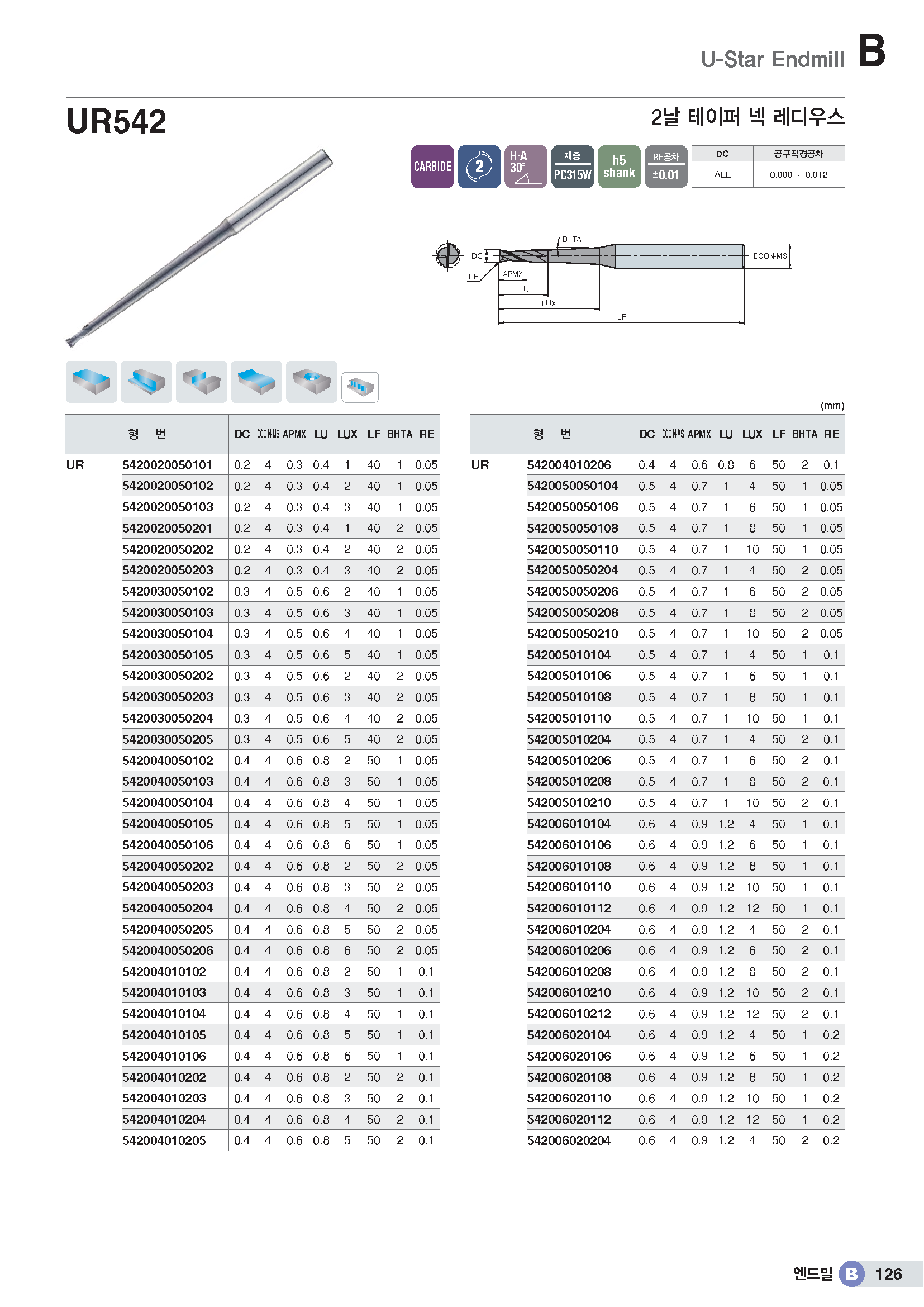 U-Star 2F T-Neck C-R EM/-HRC50 (0.6*R0.2*0.9*4*50) |