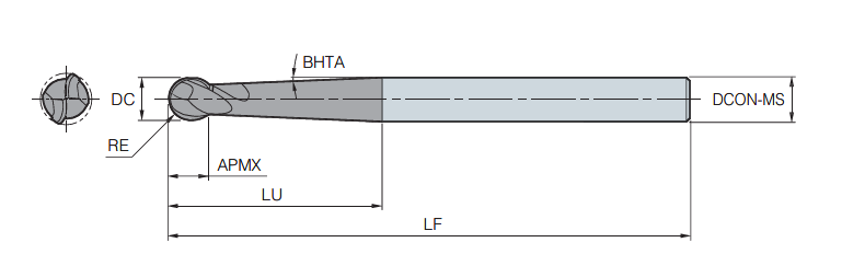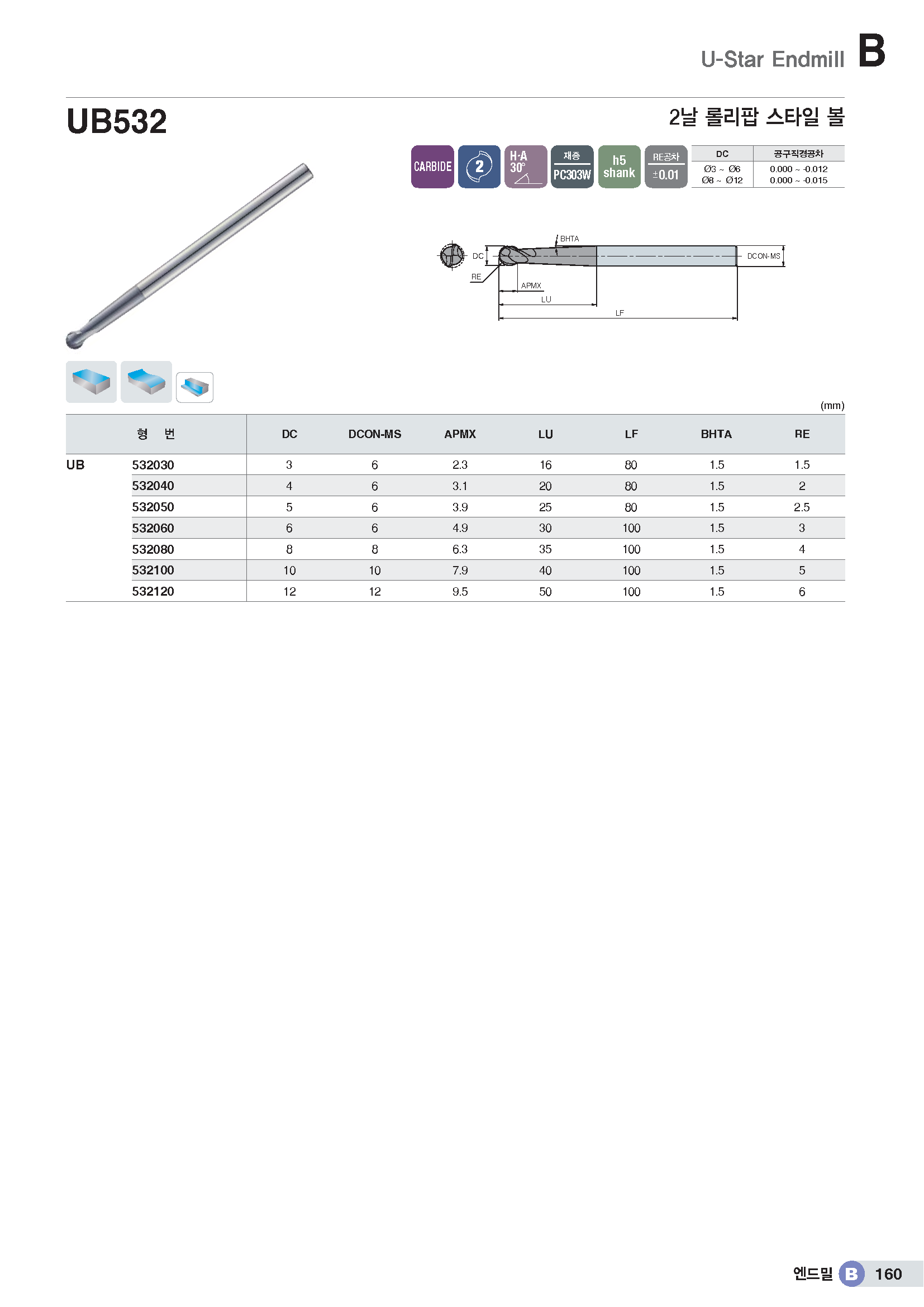 2날 범용 볼 엔드밀(롱-샹크) UB532../ KR
