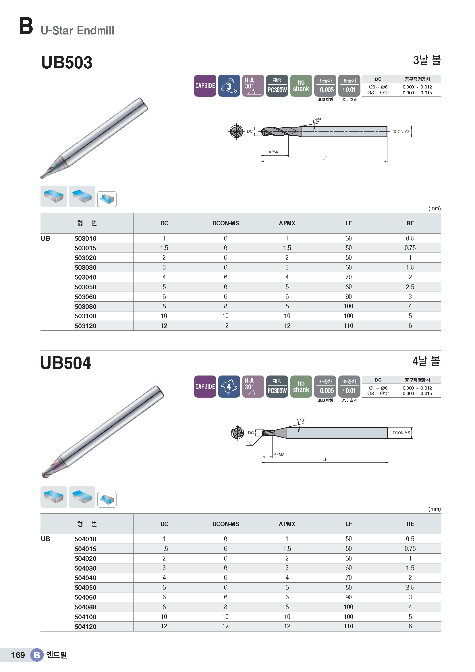 4날 범용 볼 엔드밀 UB504../ KR