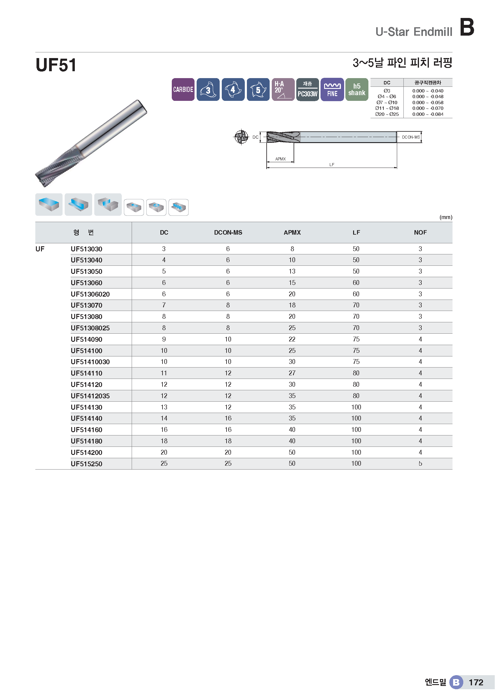 범용 라핑 엔드밀(파인피치) UF51../ KR