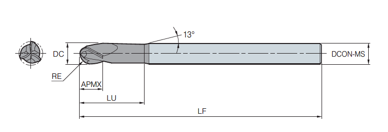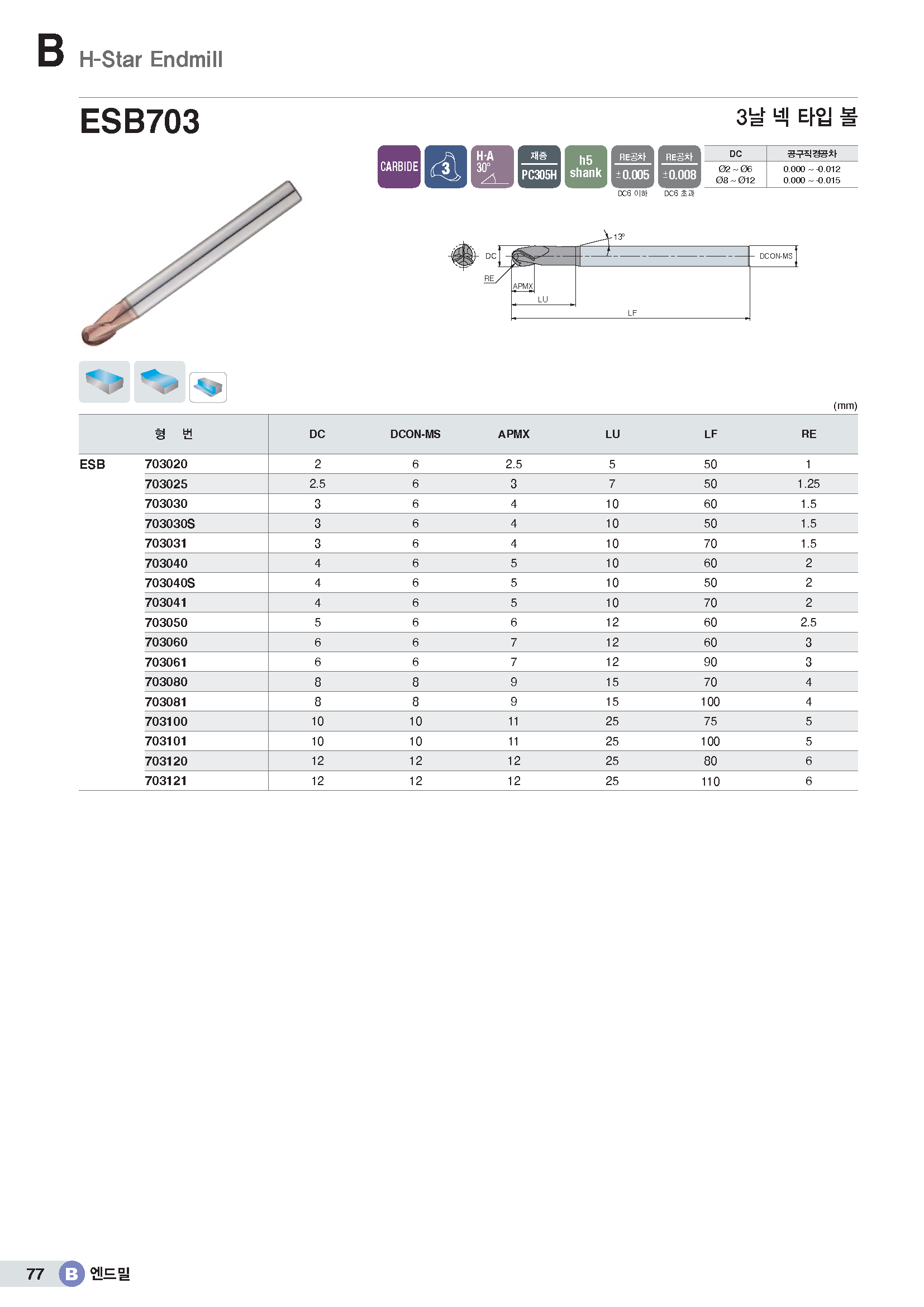 3날 고경도용 볼 엔드밀(넥-타입) ESB703../ KR