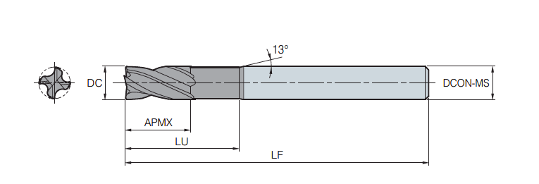 4날 고경도용 플렛 엔드밀(넥-타입,멀티헬렉스) ESXE704../ KR