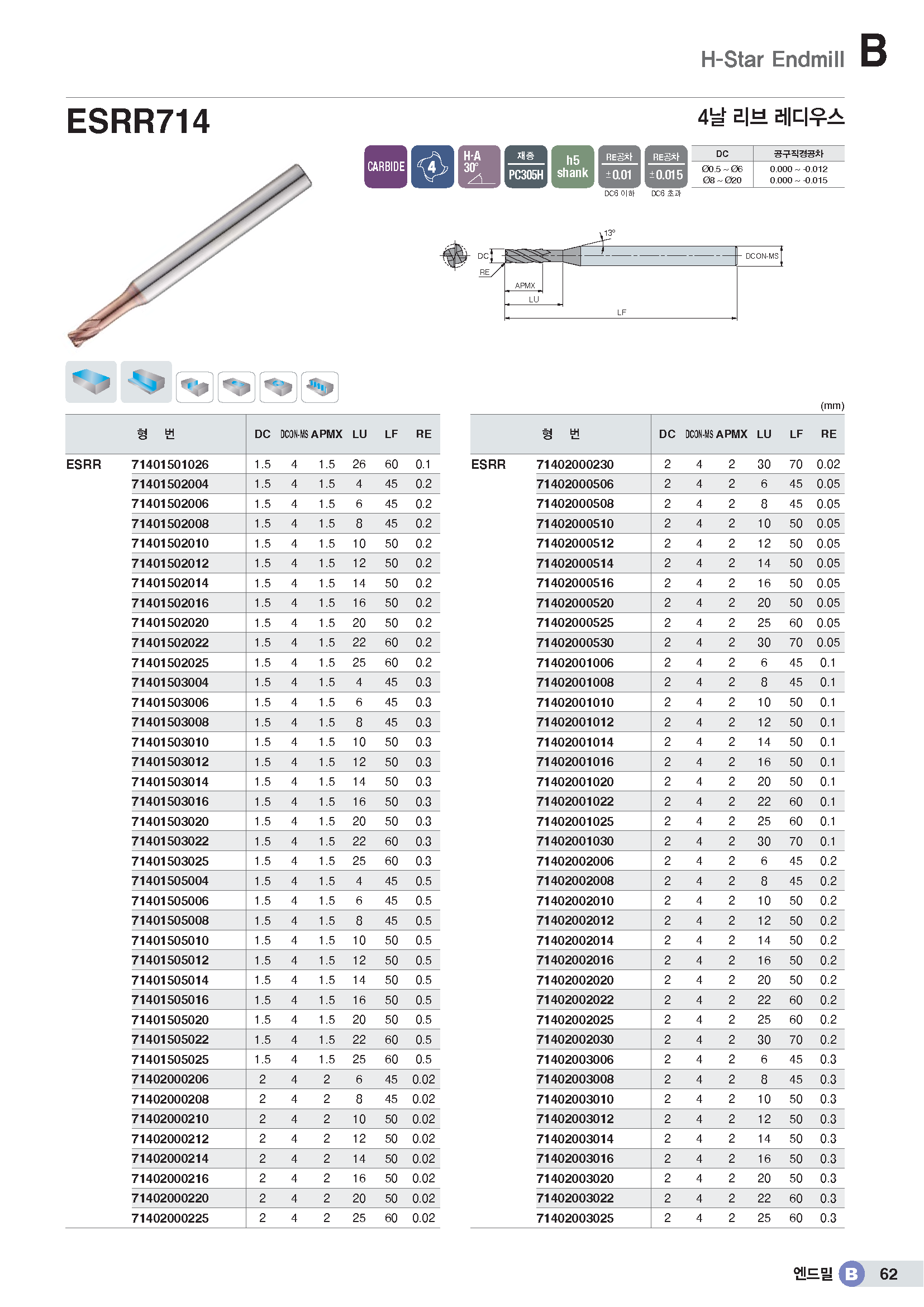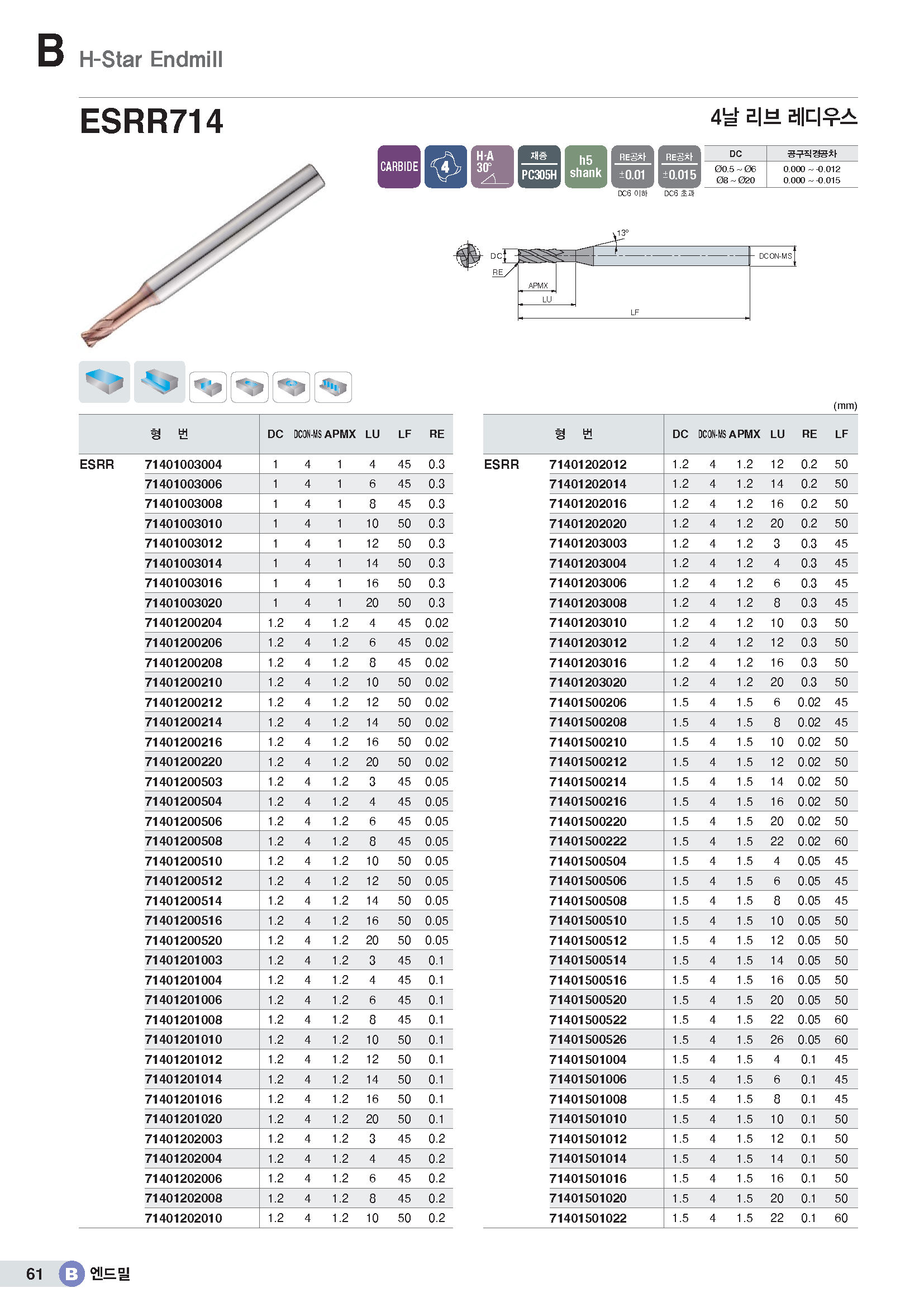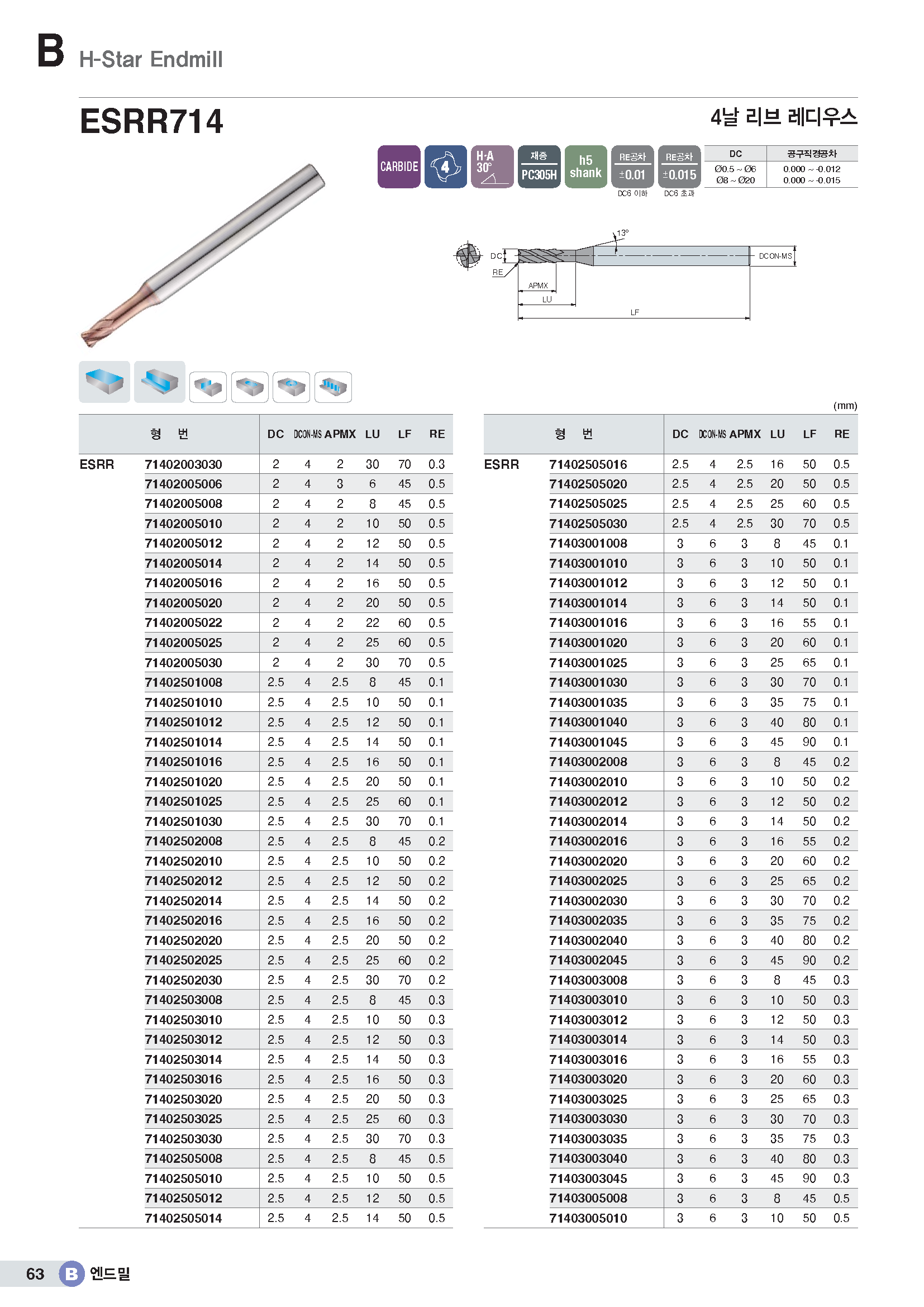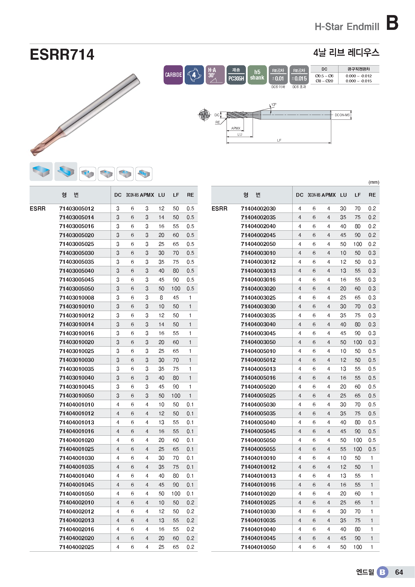 H-Star 4F Rib C-R EM/-HRC63 (8*R1*9*22*65*S8) |