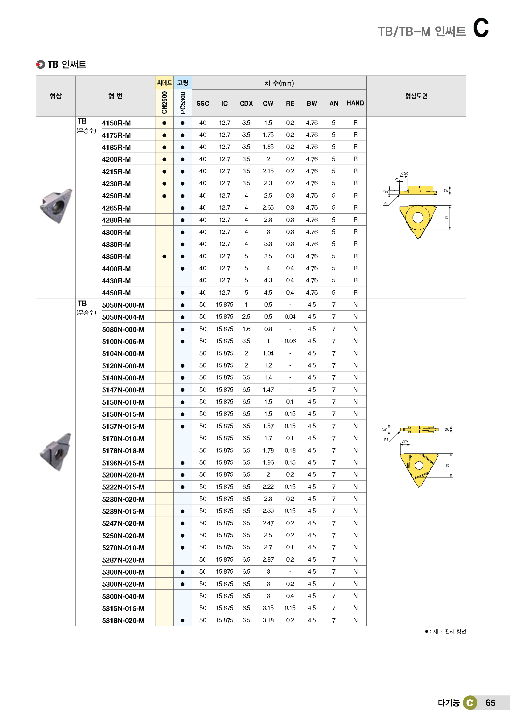 • 상품명 홈가공 인써트(3코너)/ TBH5../범용