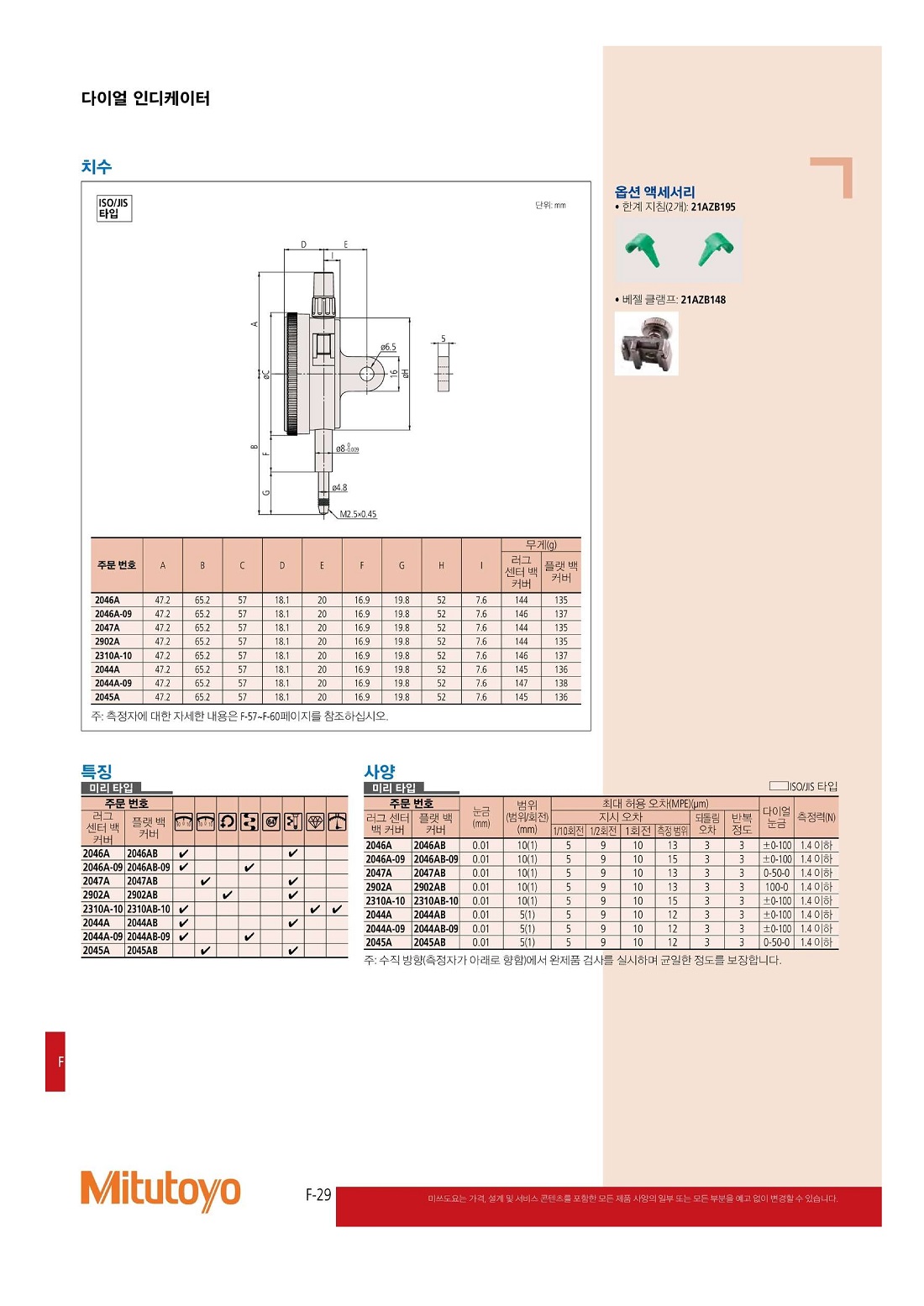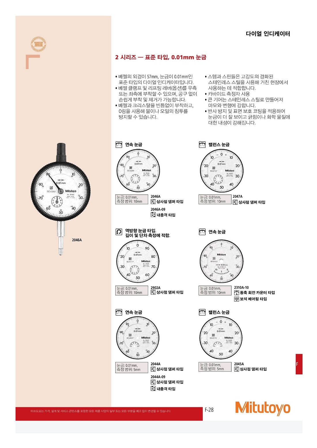 • 규격/옵션 2046A(<=2046S) /(10mm-1.0/0.01mm)