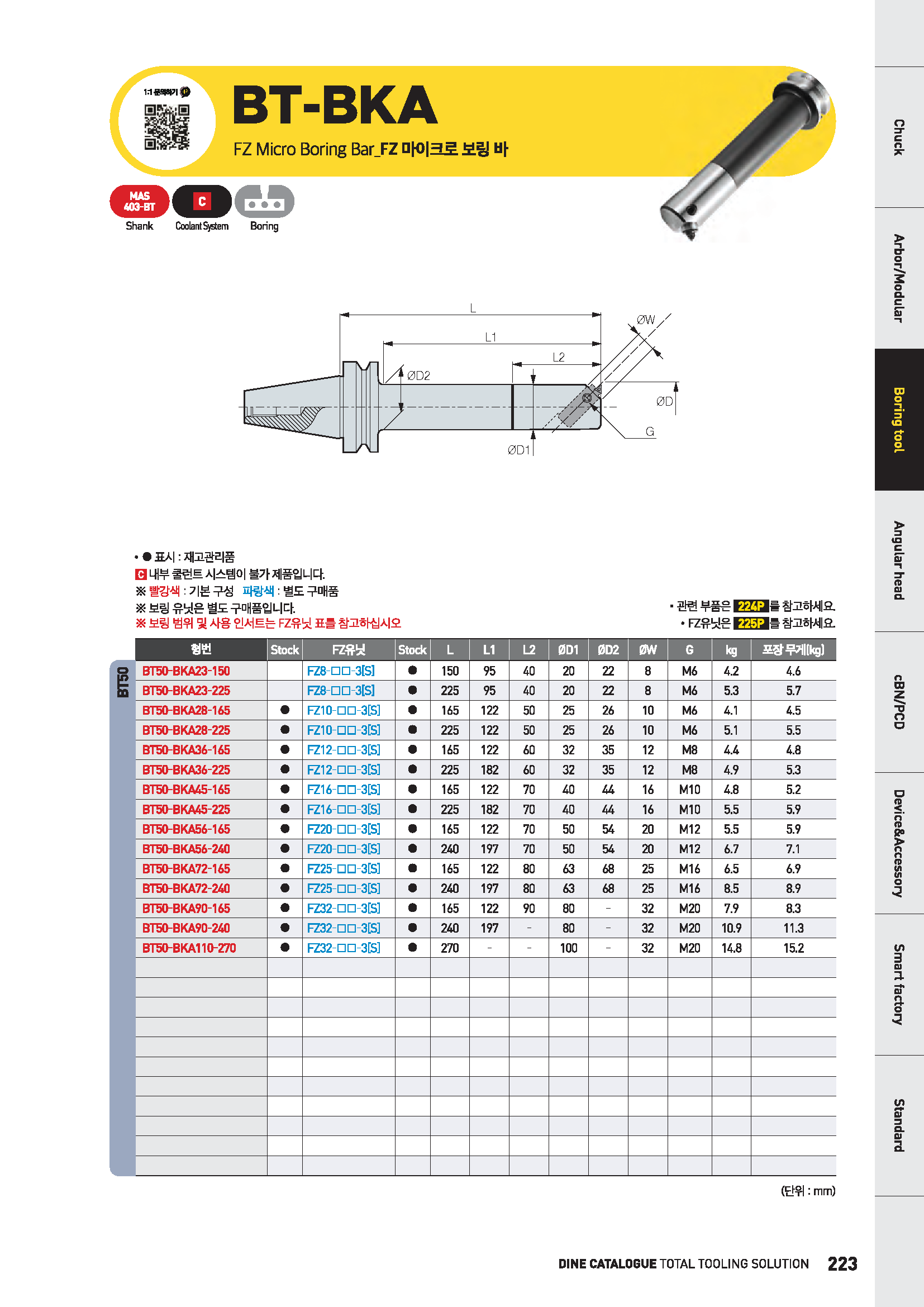 마이크로 보링바 (유니트 FZ25-□□-3(S) 별도,Φ72-96) 45° |