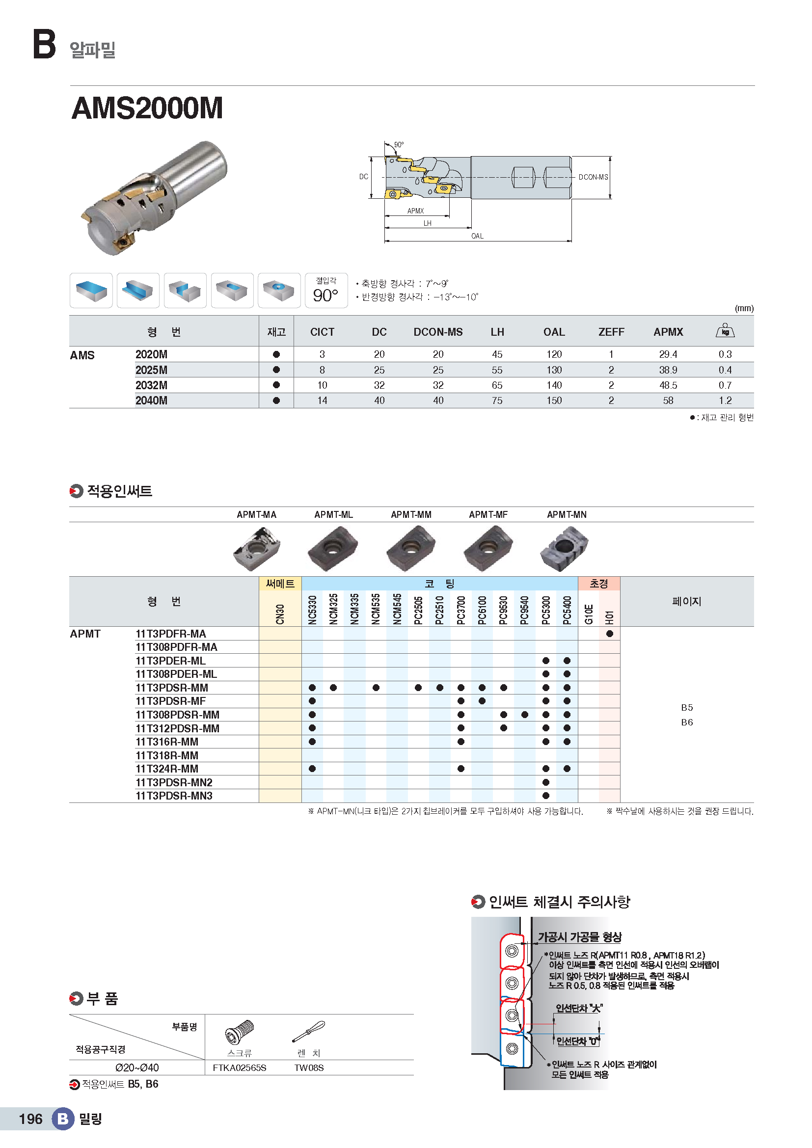 • 상품명 90°헬리컬 엔드밀 커터/ APMT11T3..