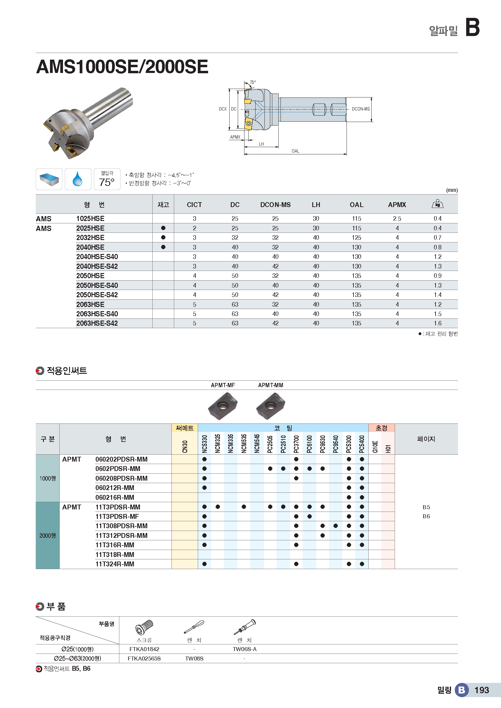 75°엔드밀 커터(2코너) AMS2..SE/ KR