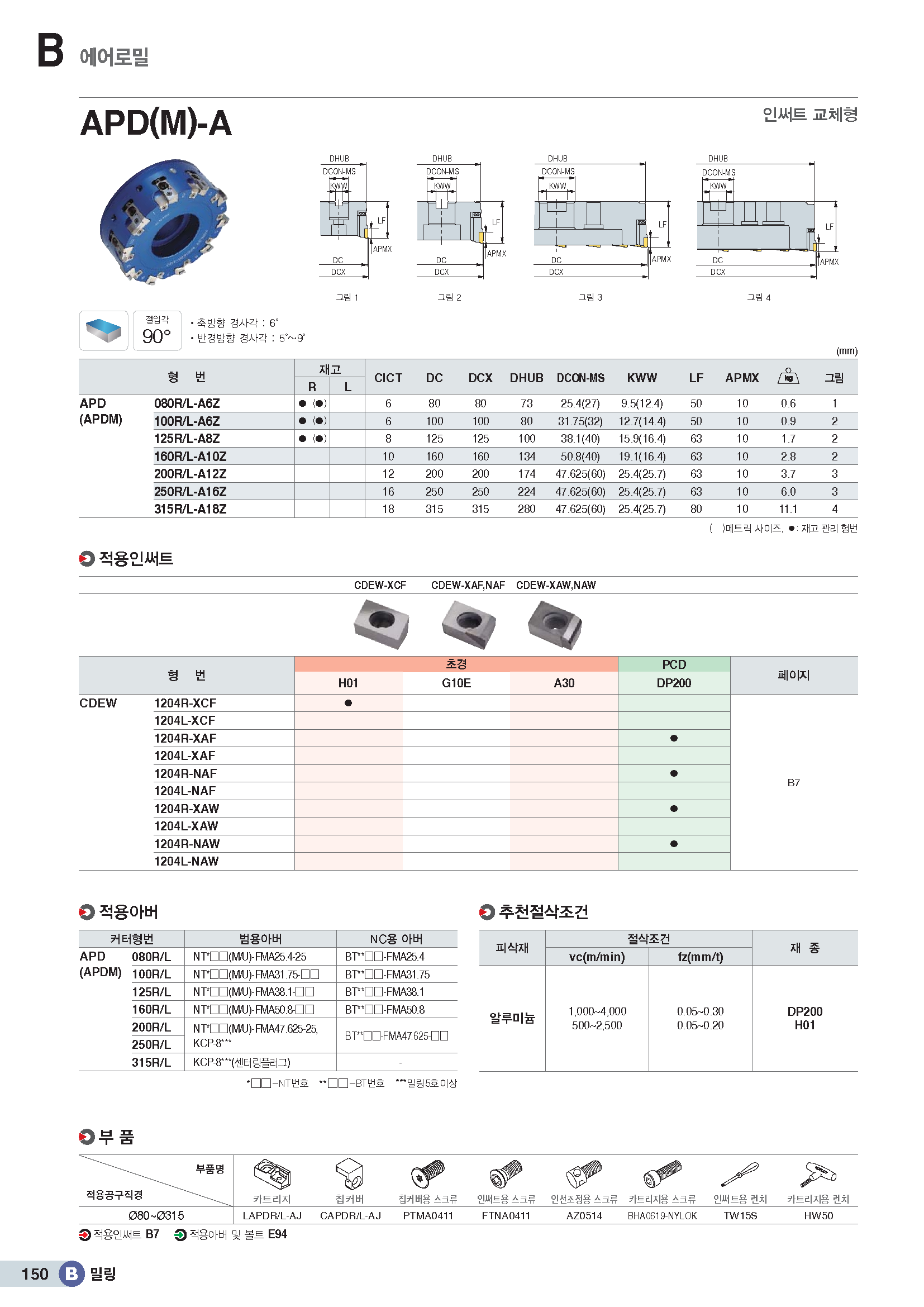 AL전용 90°페이스밀 커터 APD□../ KR