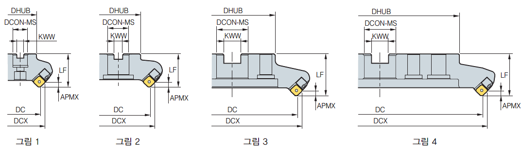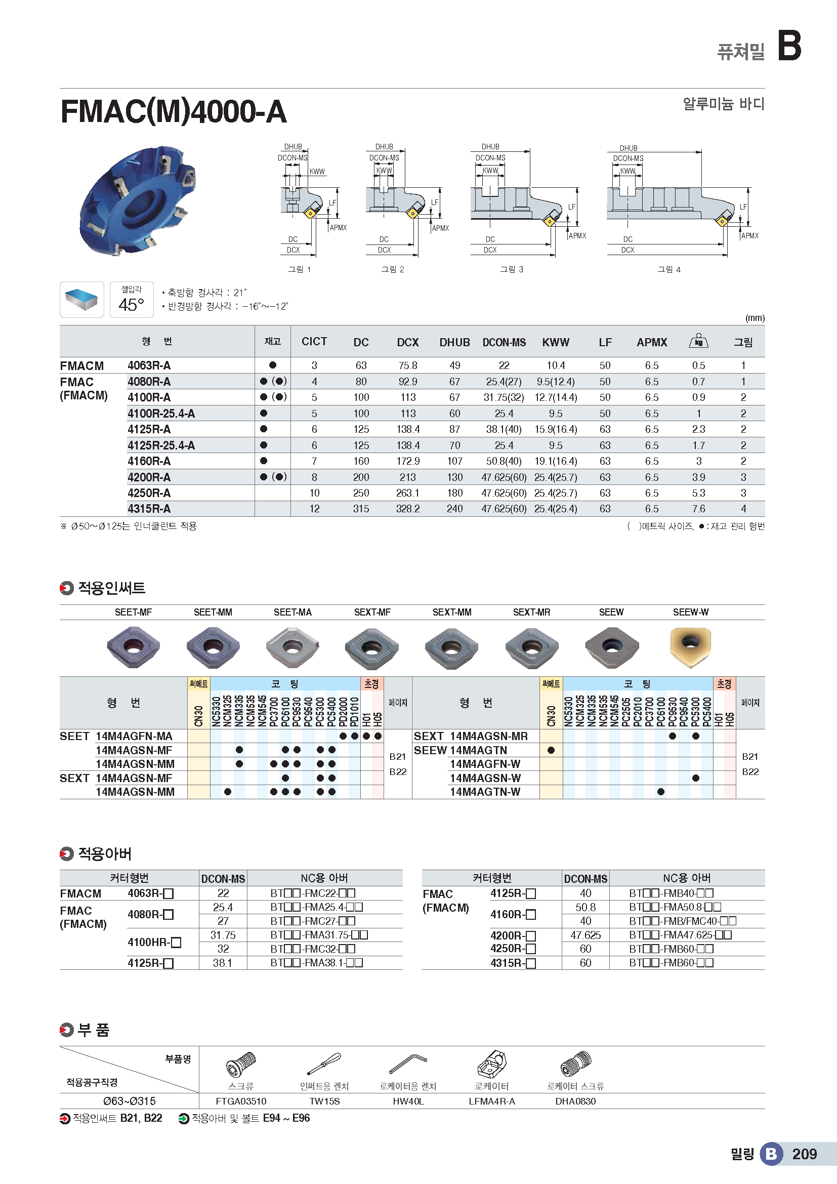 45°페이스밀 커터(4코너,알루미늄바디) FMAC□4..-A/ KR