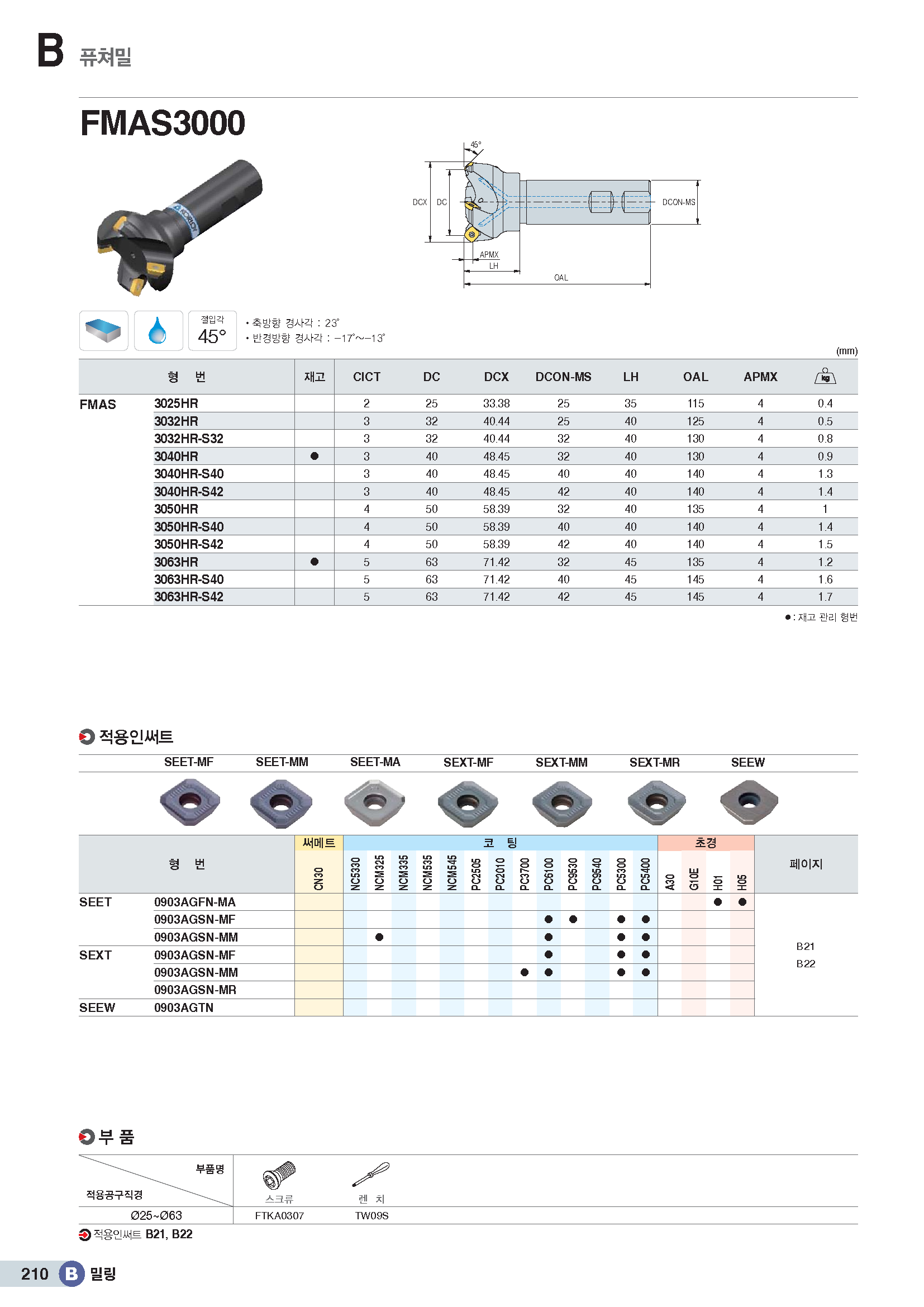 45°엔드밀 커터(4코너) FMAS3..HR/ KR
