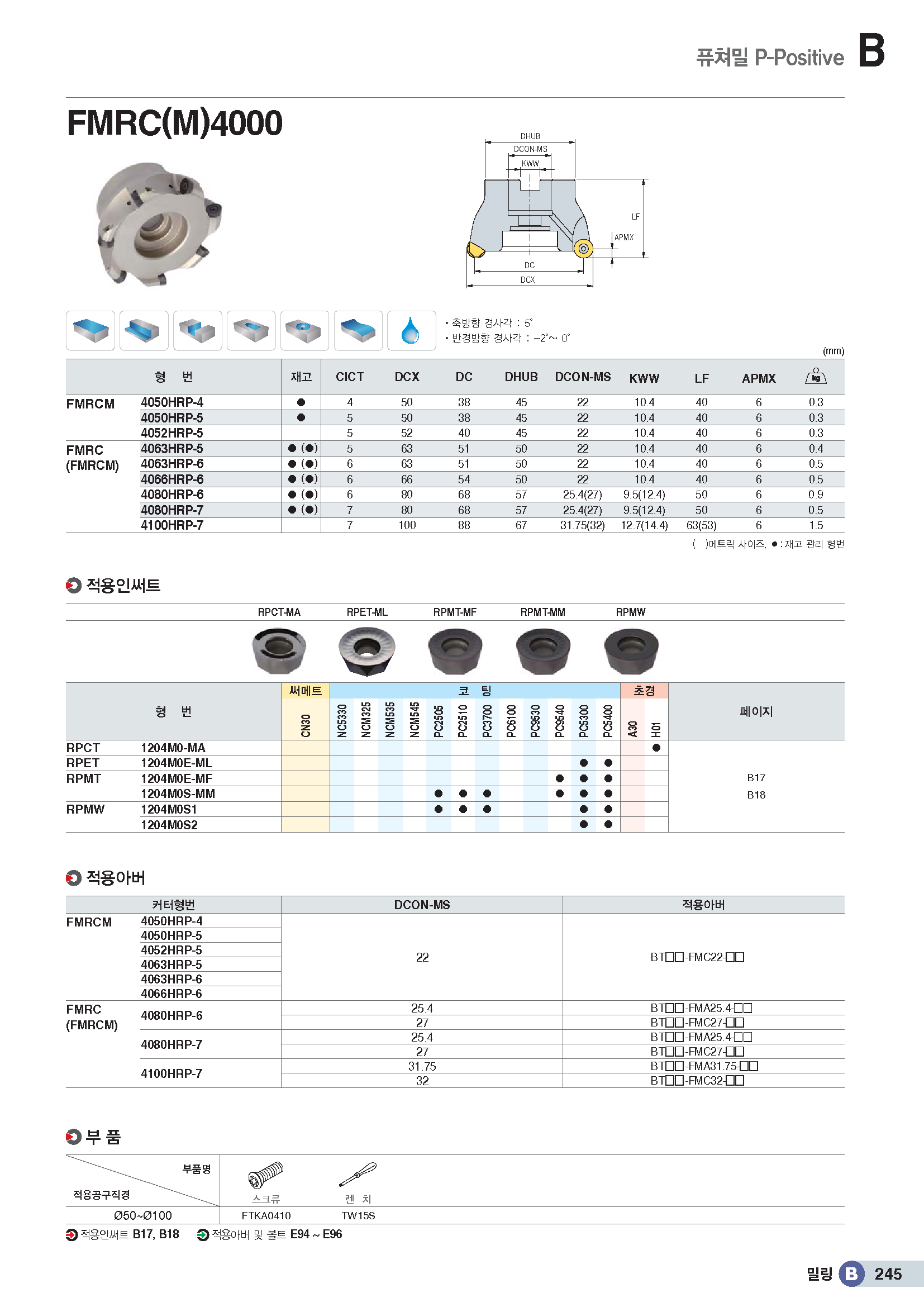 퓨처밀 R-페이스밀 커터/ RP□□2007.. |