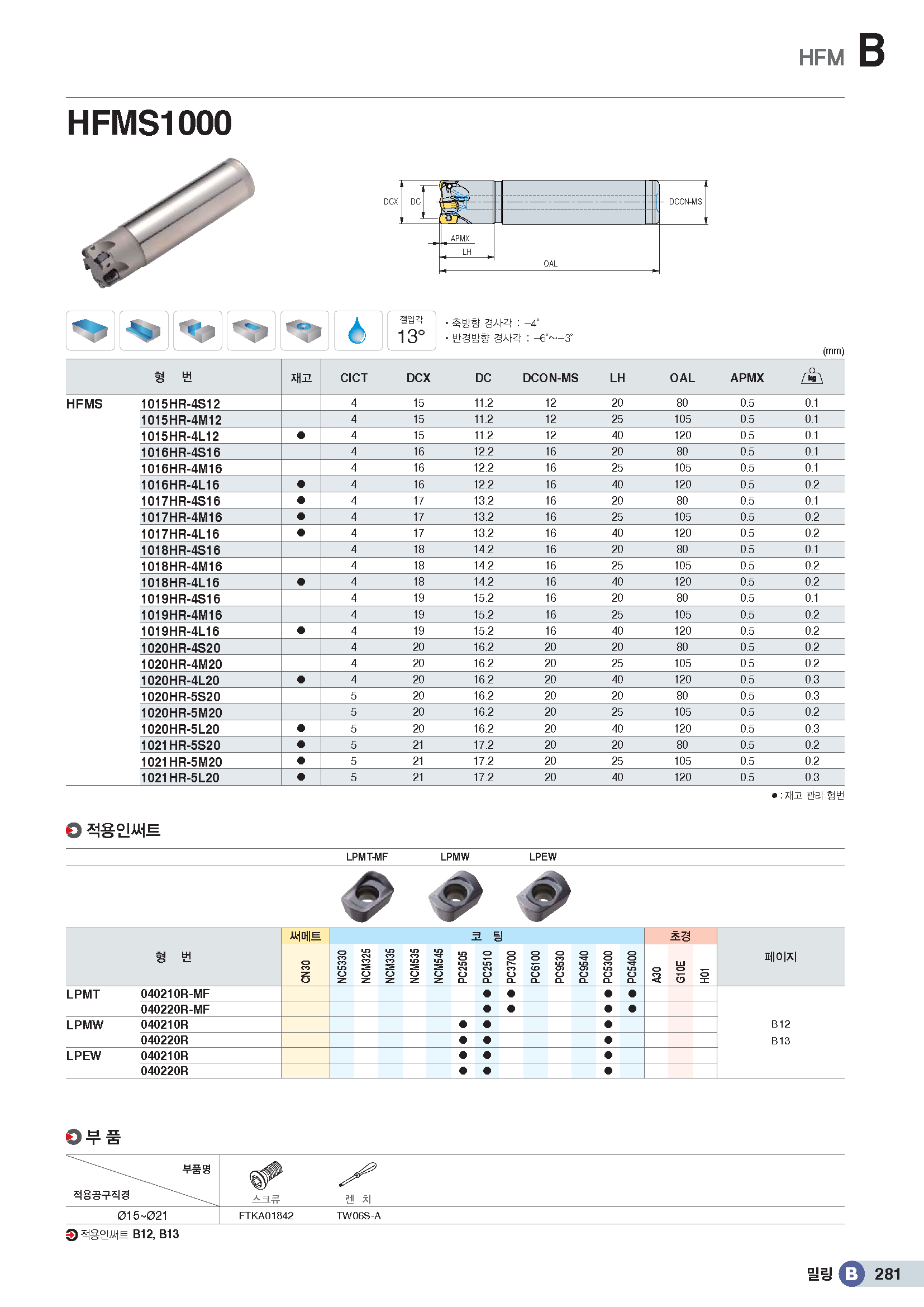 • 상품명 하이-피드밀(2코너) 엔드밀 커터/ LP□□0402..