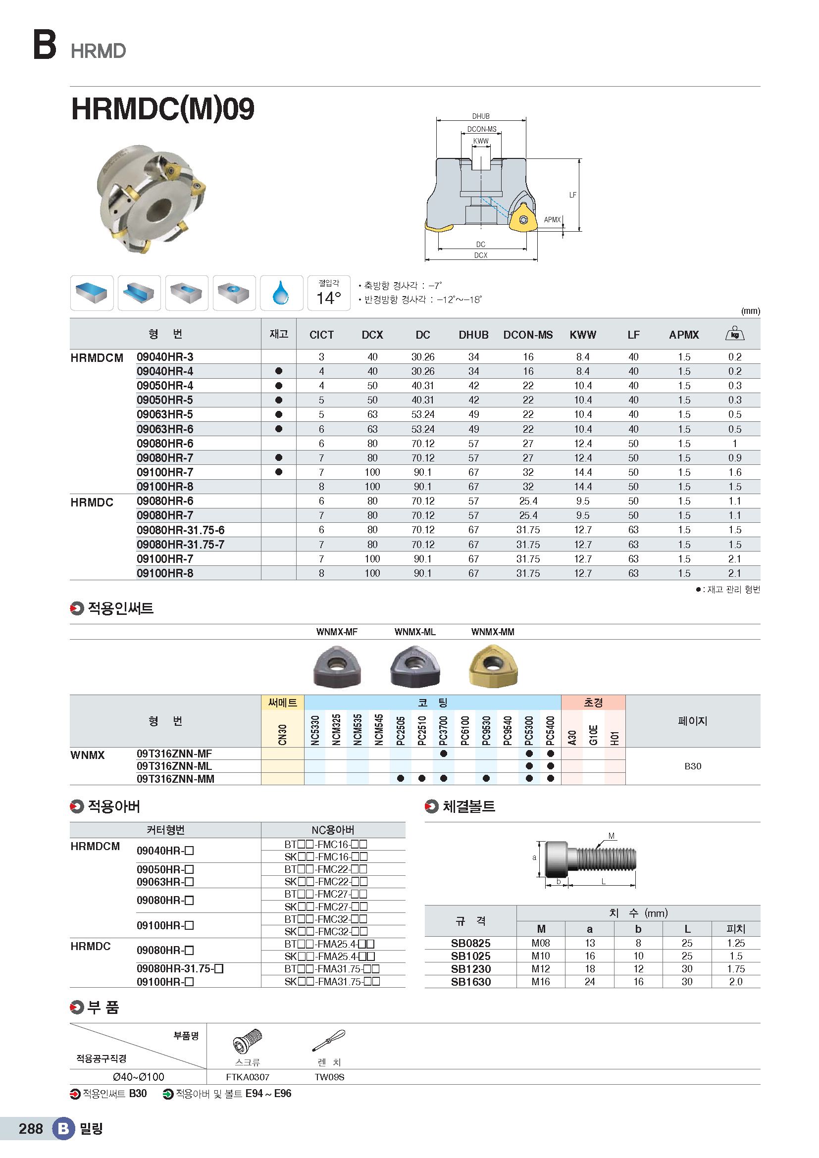 고이송 페이스밀 커터(6코너) HRMDC□09../ KR