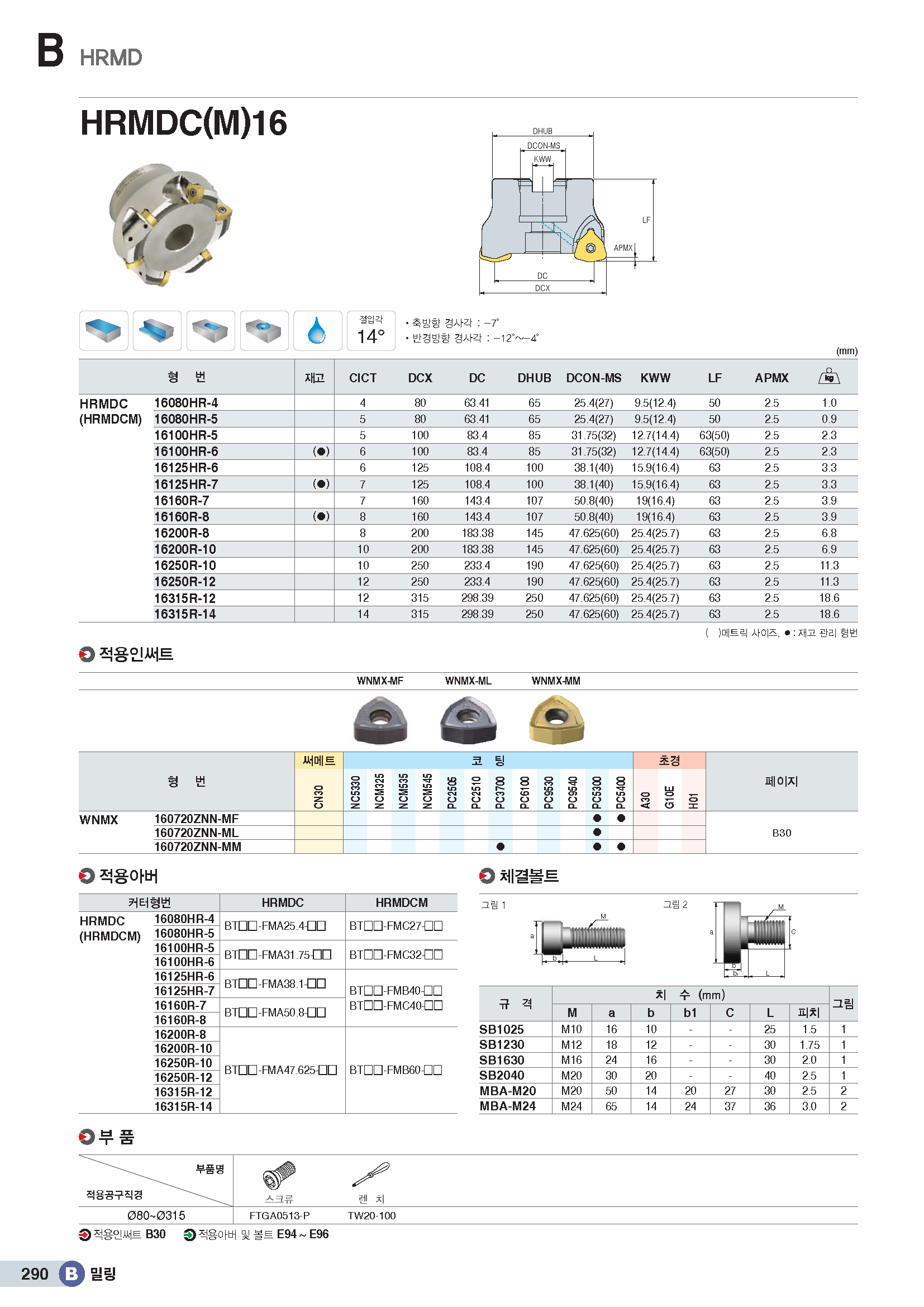 고이송 페이스밀 커터(6코너) HRMDC□16../ KR