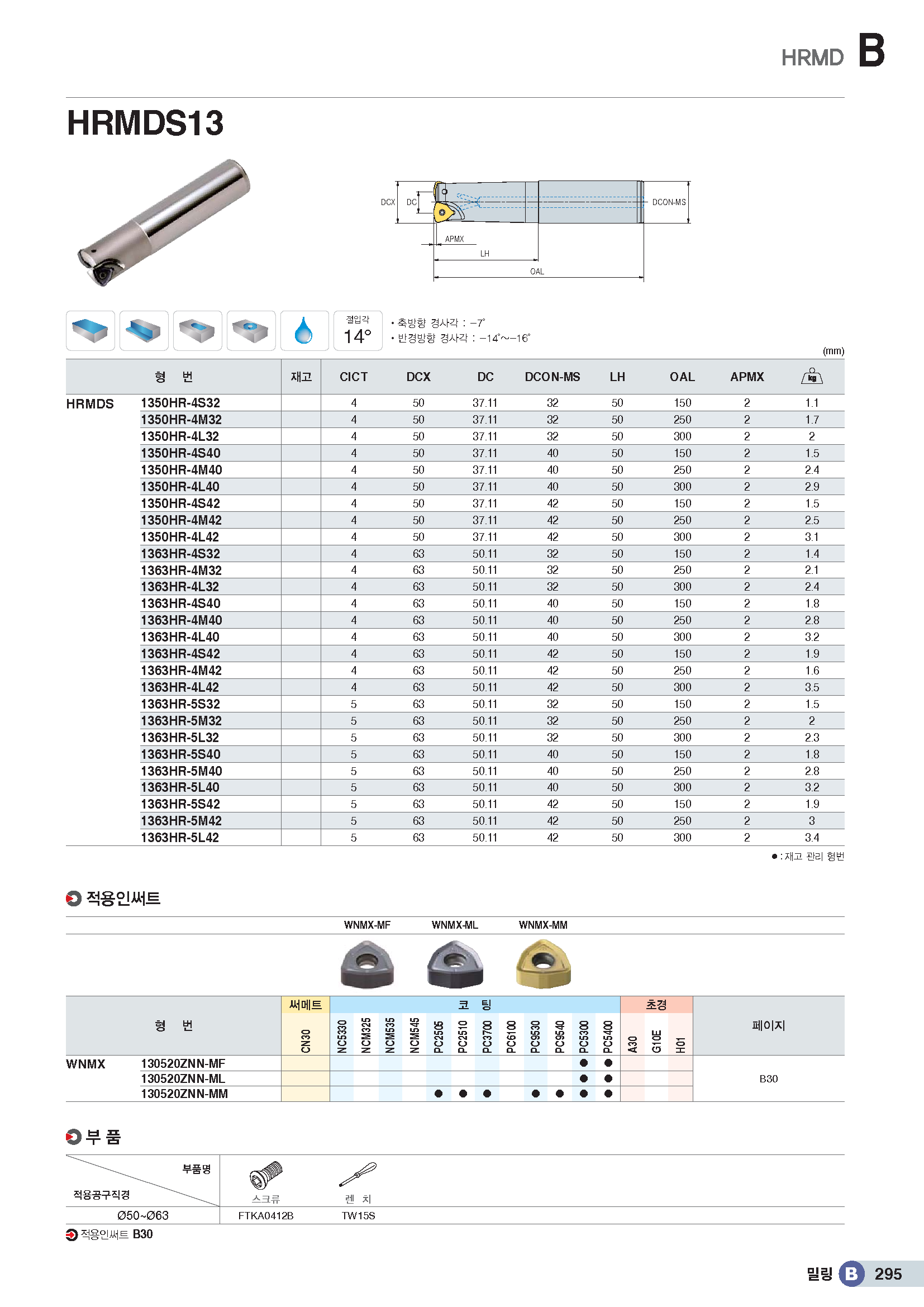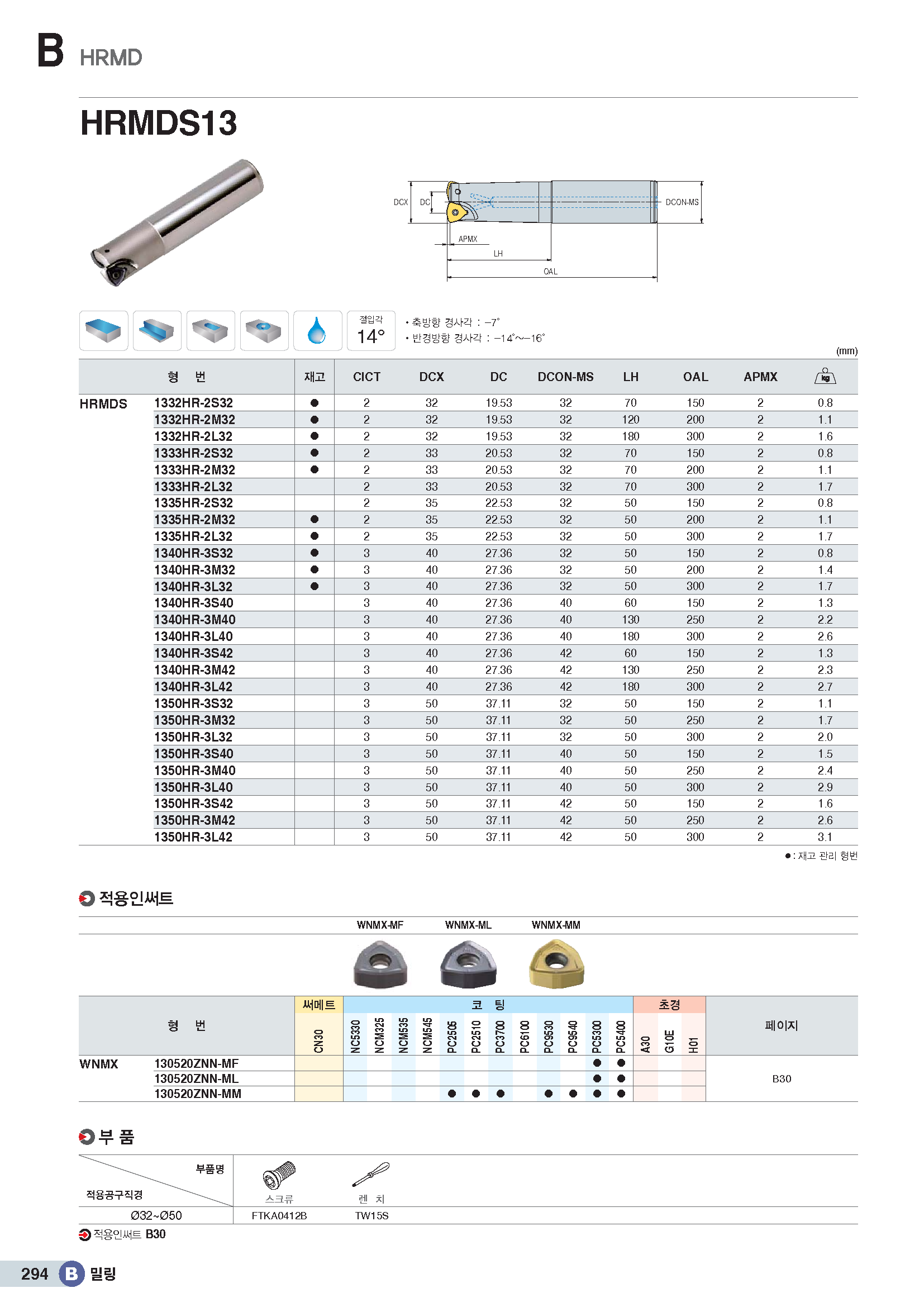 고이송 엔드밀 커터(6코너) HRMDS13../ KR