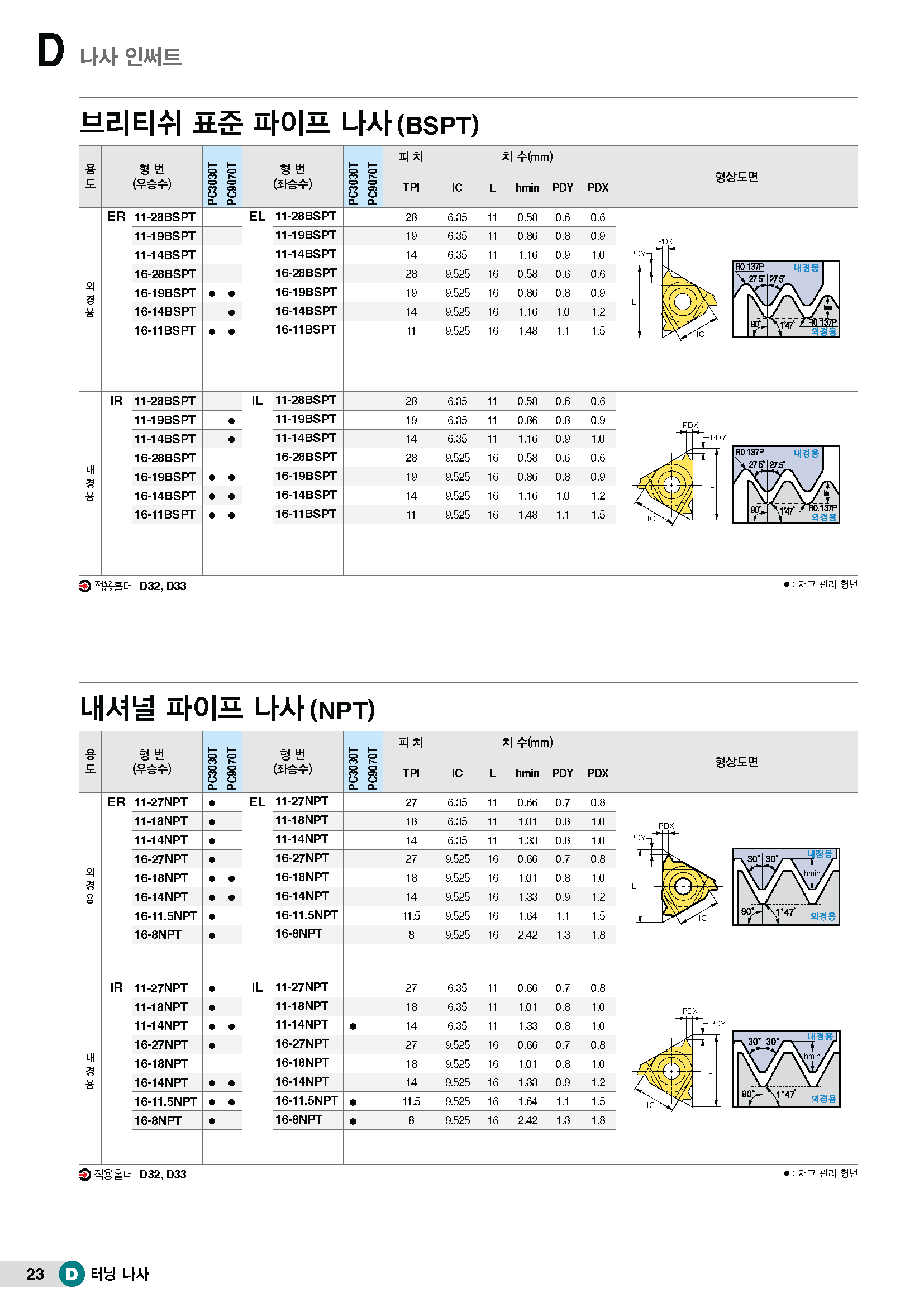 • 상품명 터닝 내경 나사 인써트 BSPT /SUS용