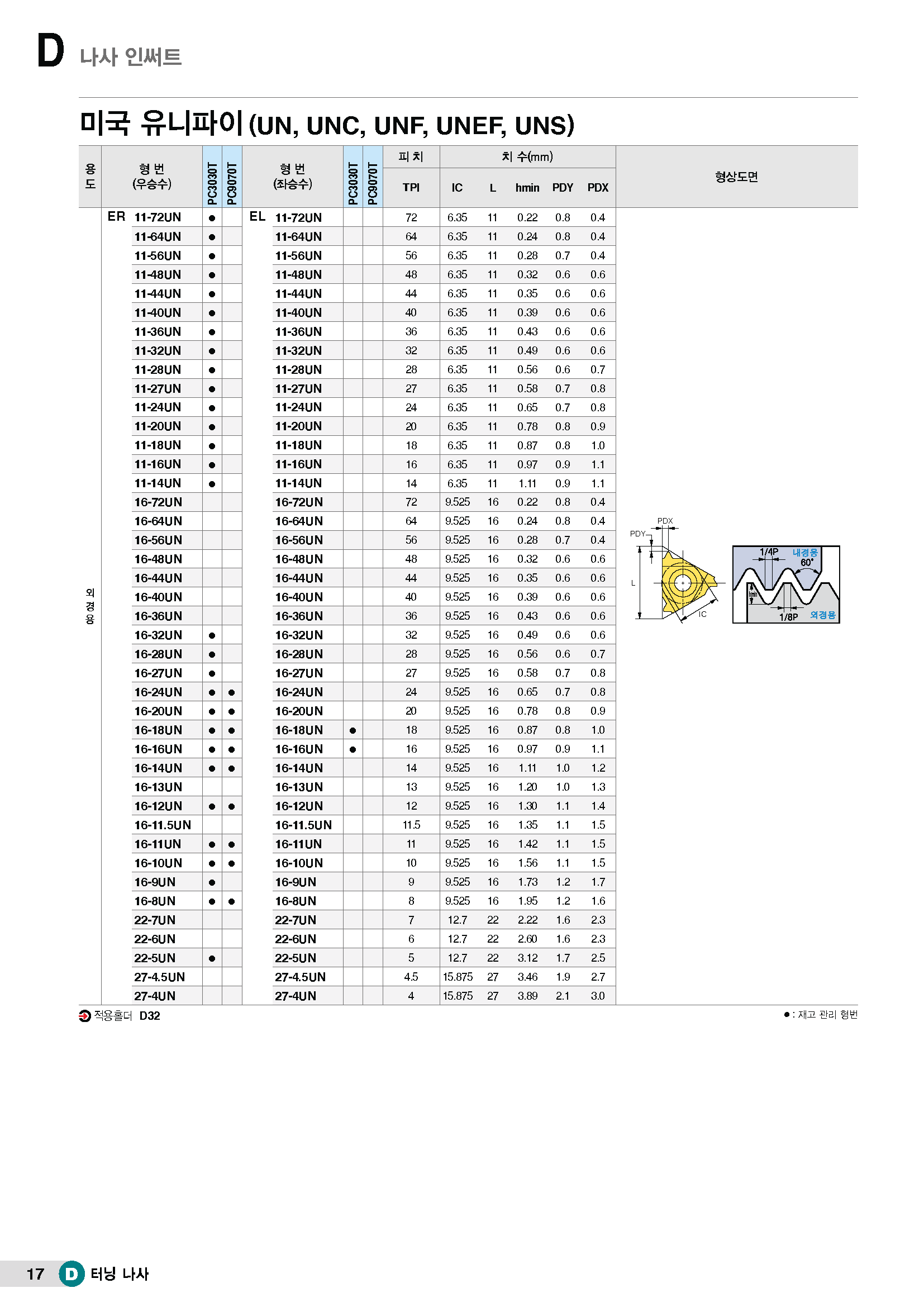 • 상품명 터닝 내경 나사 인써트 UN /SUS용