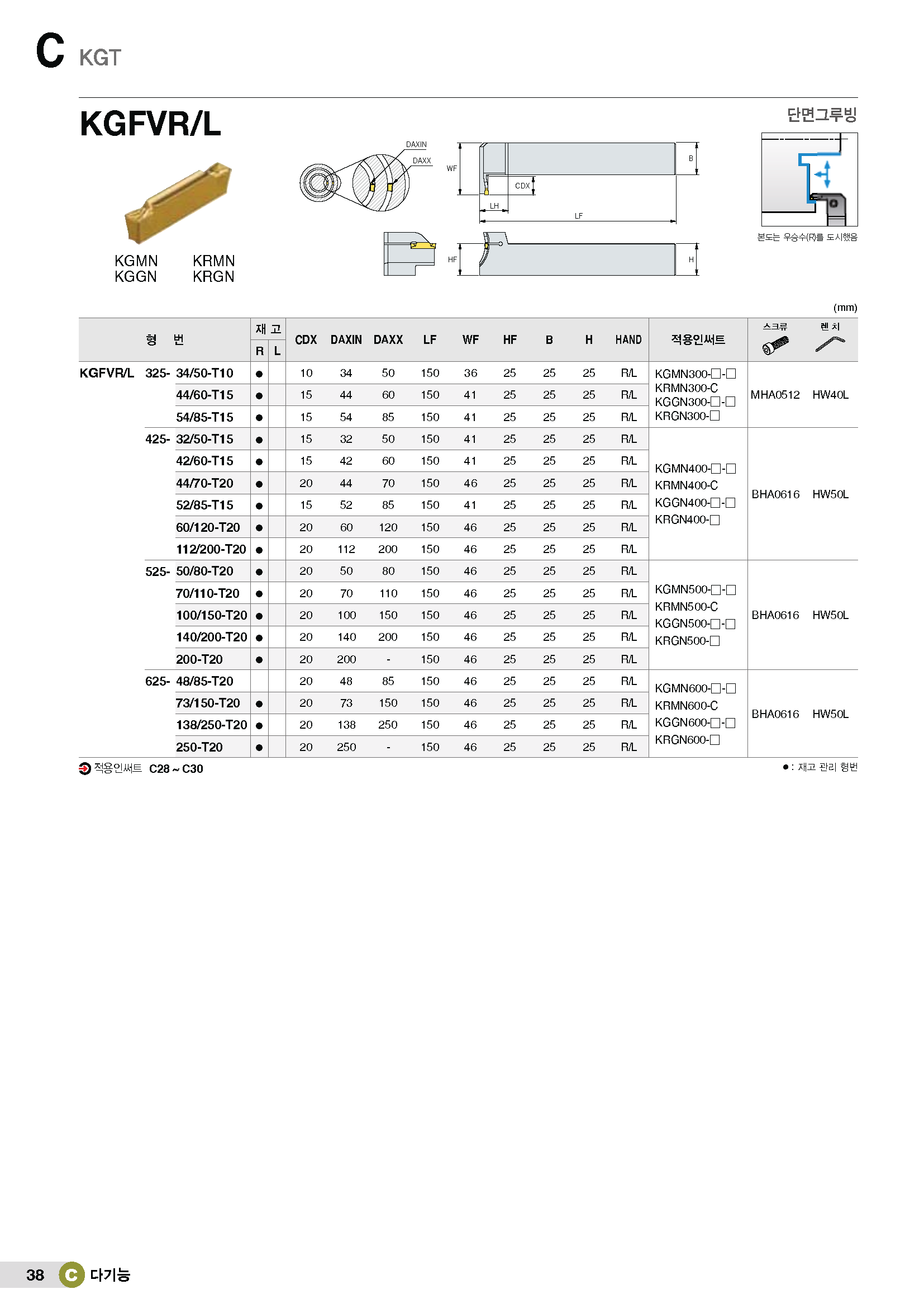 • 상품명 KGT 단면 홈가공 홀더/ KG□N&KR□N300..