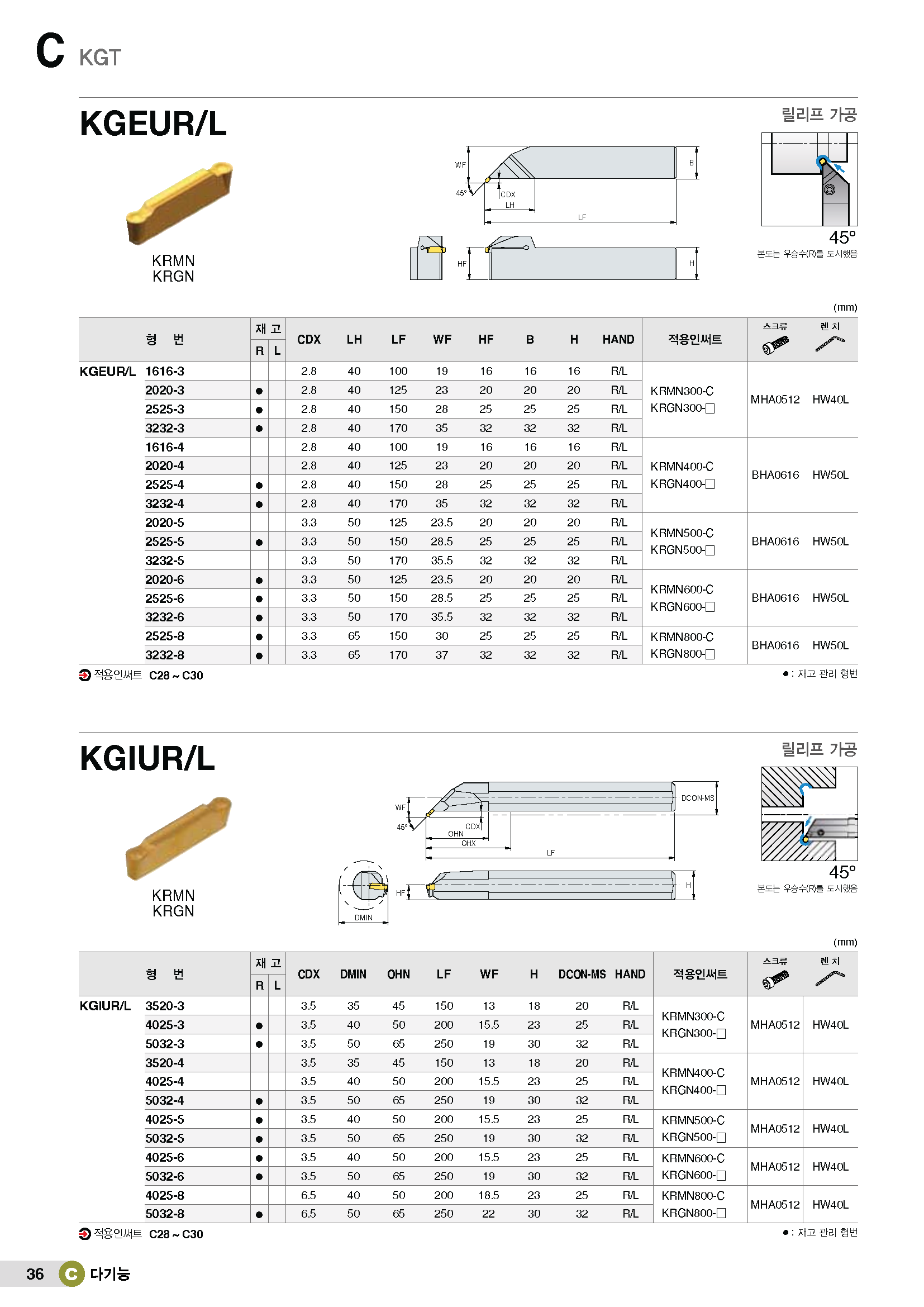 • 상품명 KGT 내경 릴리프 홈가공 홀더/ KR□N300..