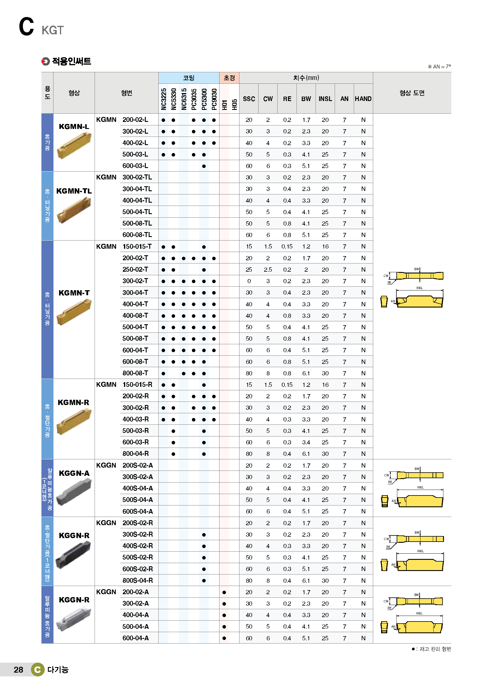 홈가공 인써트(2코너,&절단)/ KGMN..-L/ KR