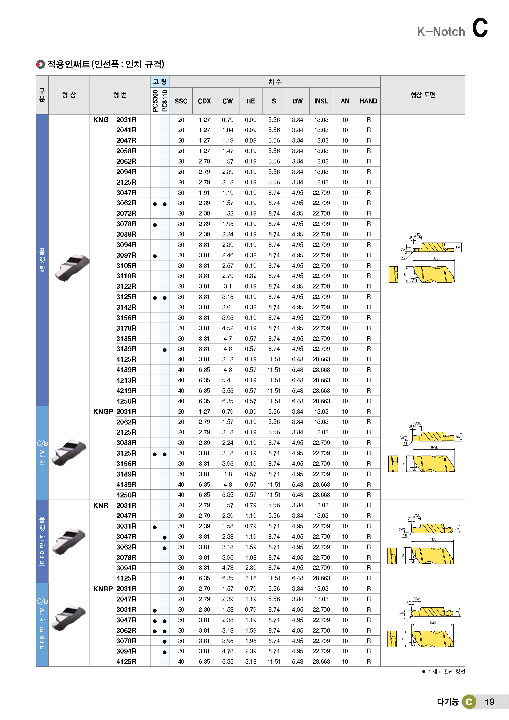 • 상품명 K-Notch 홈가공 인써트(Inch)/KNSR../범용