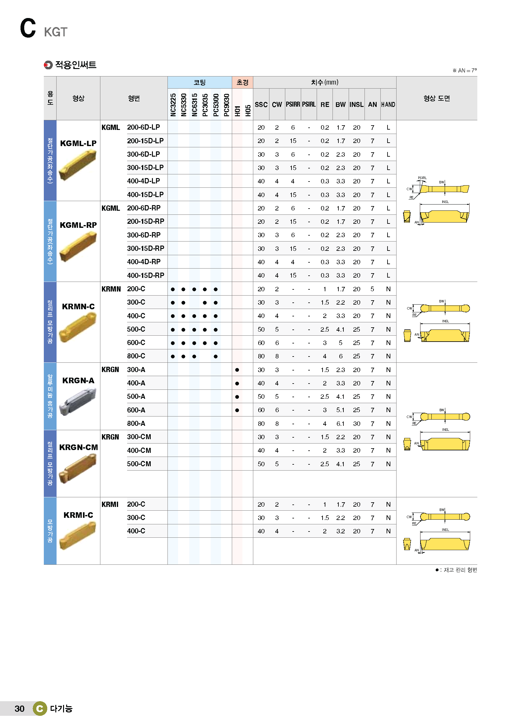 • 상품명 KGT R-홈가공 인써트/ KG□□□..-3-../강용
