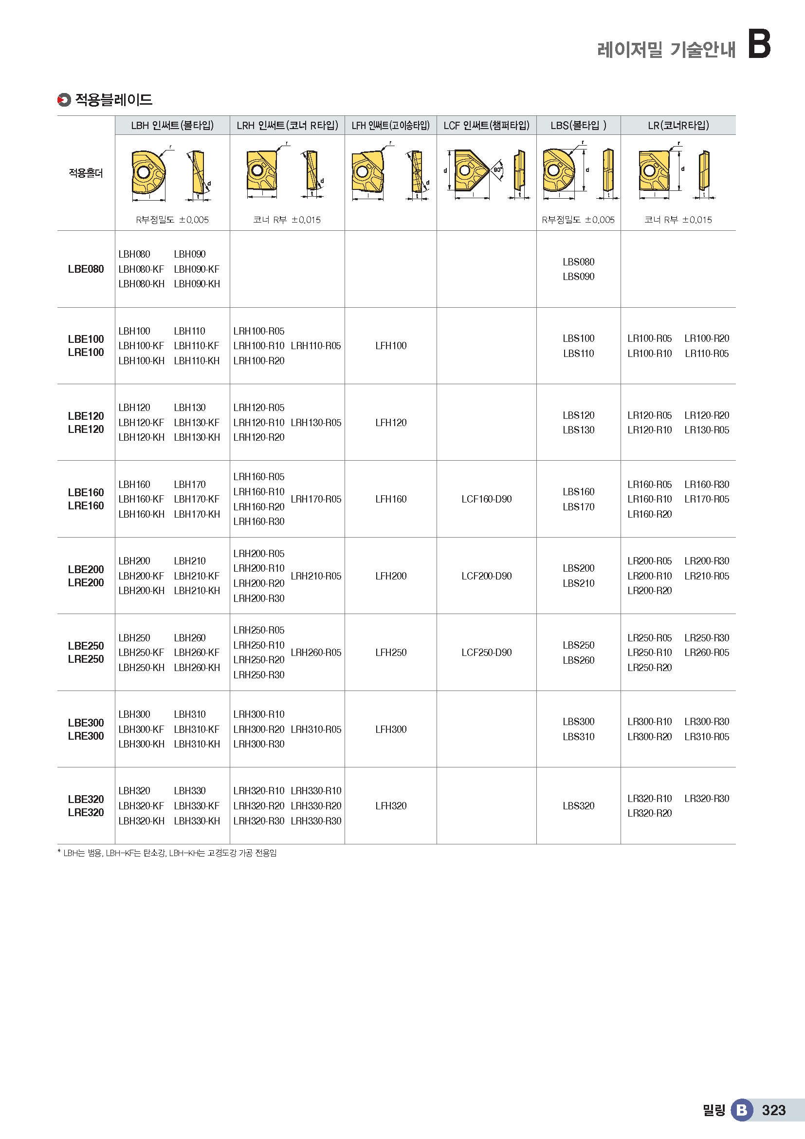 정삭 엔드밀 커터(스틸,테이퍼-넥)/ LBH,LRH,LFH,LCF320 |