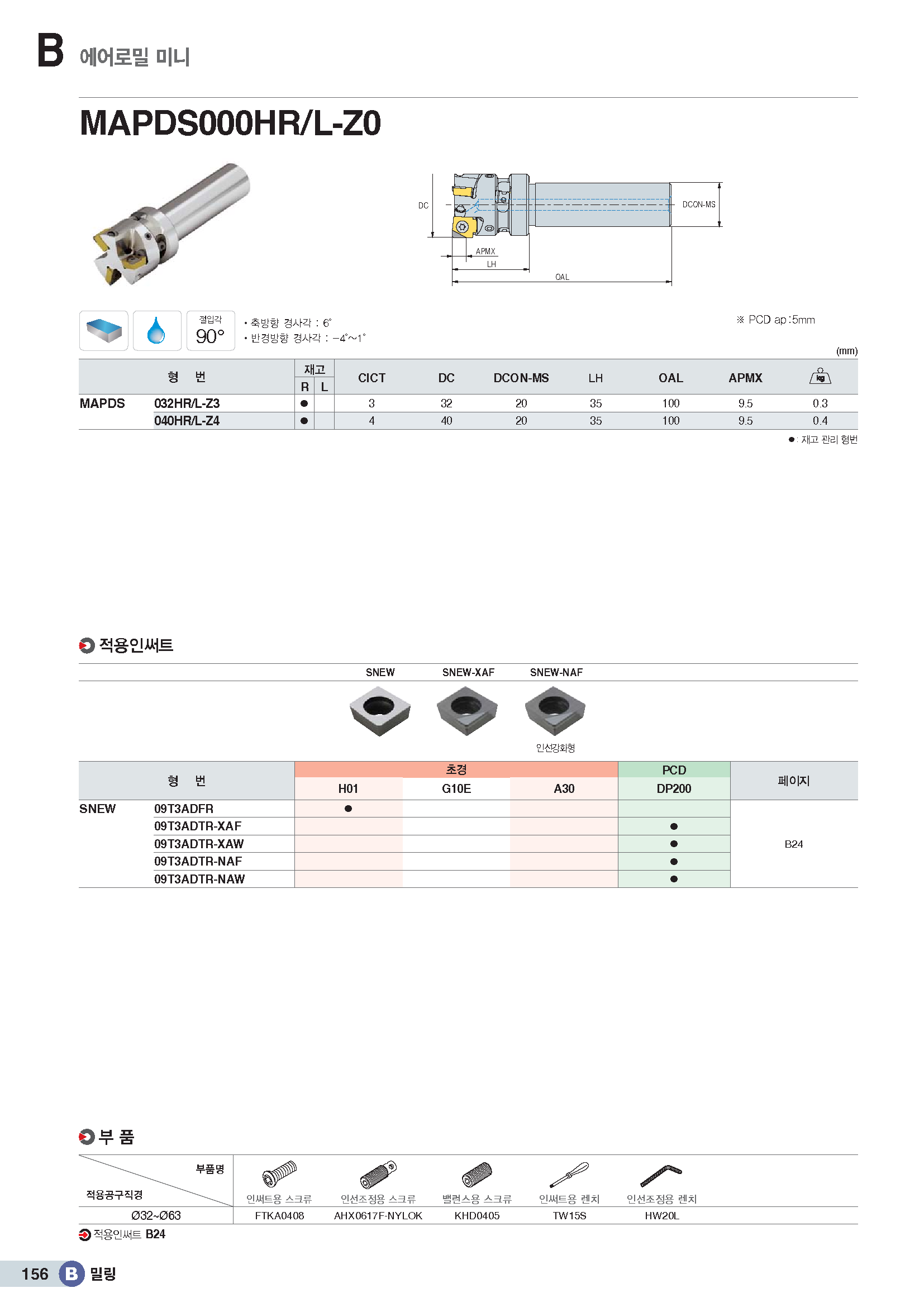 AL전용 90°페이스밀 커터 MAPD../ KR