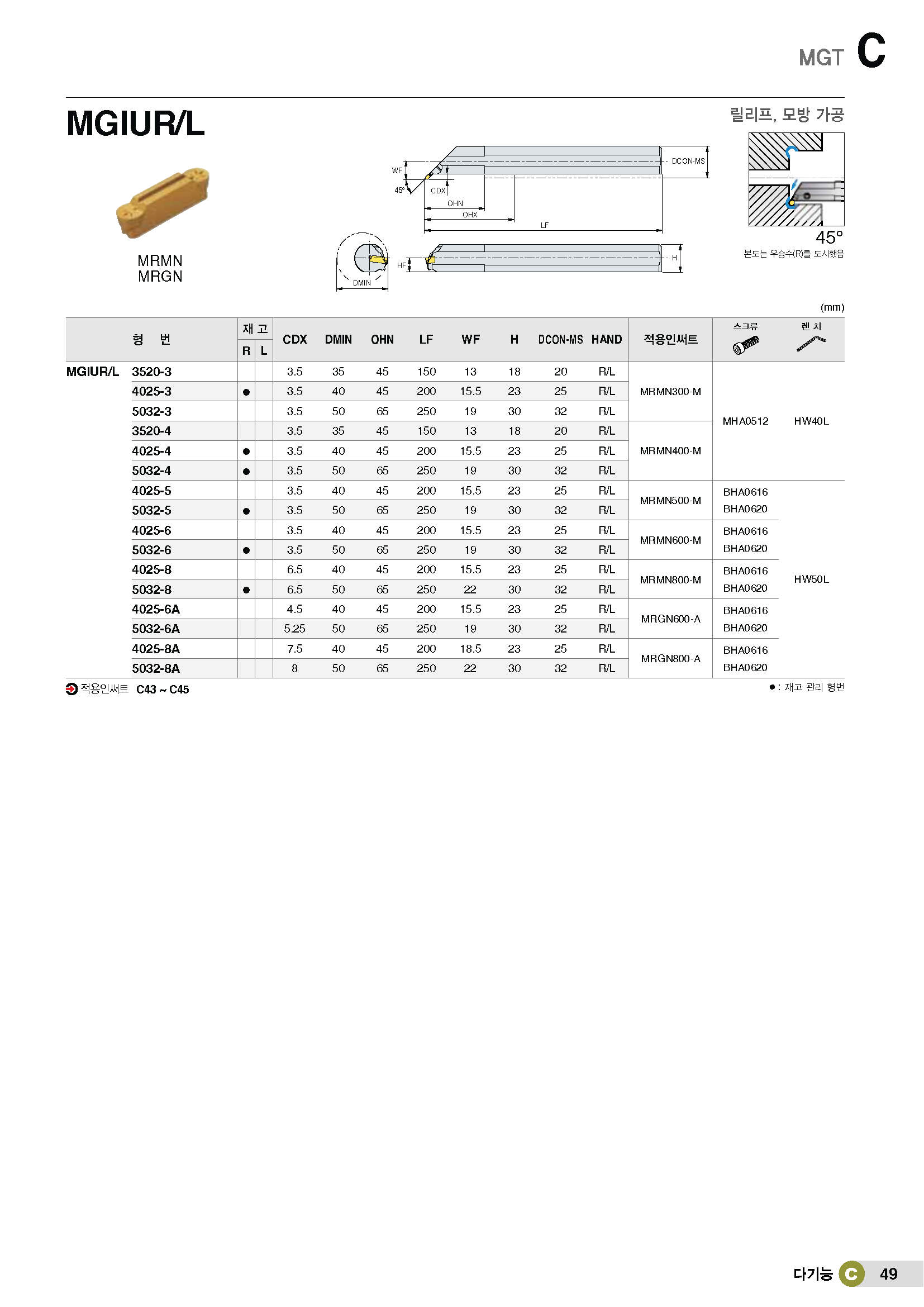 • 상품명 MGT 내경 릴리프 홈가공 홀더/ MR□N300..