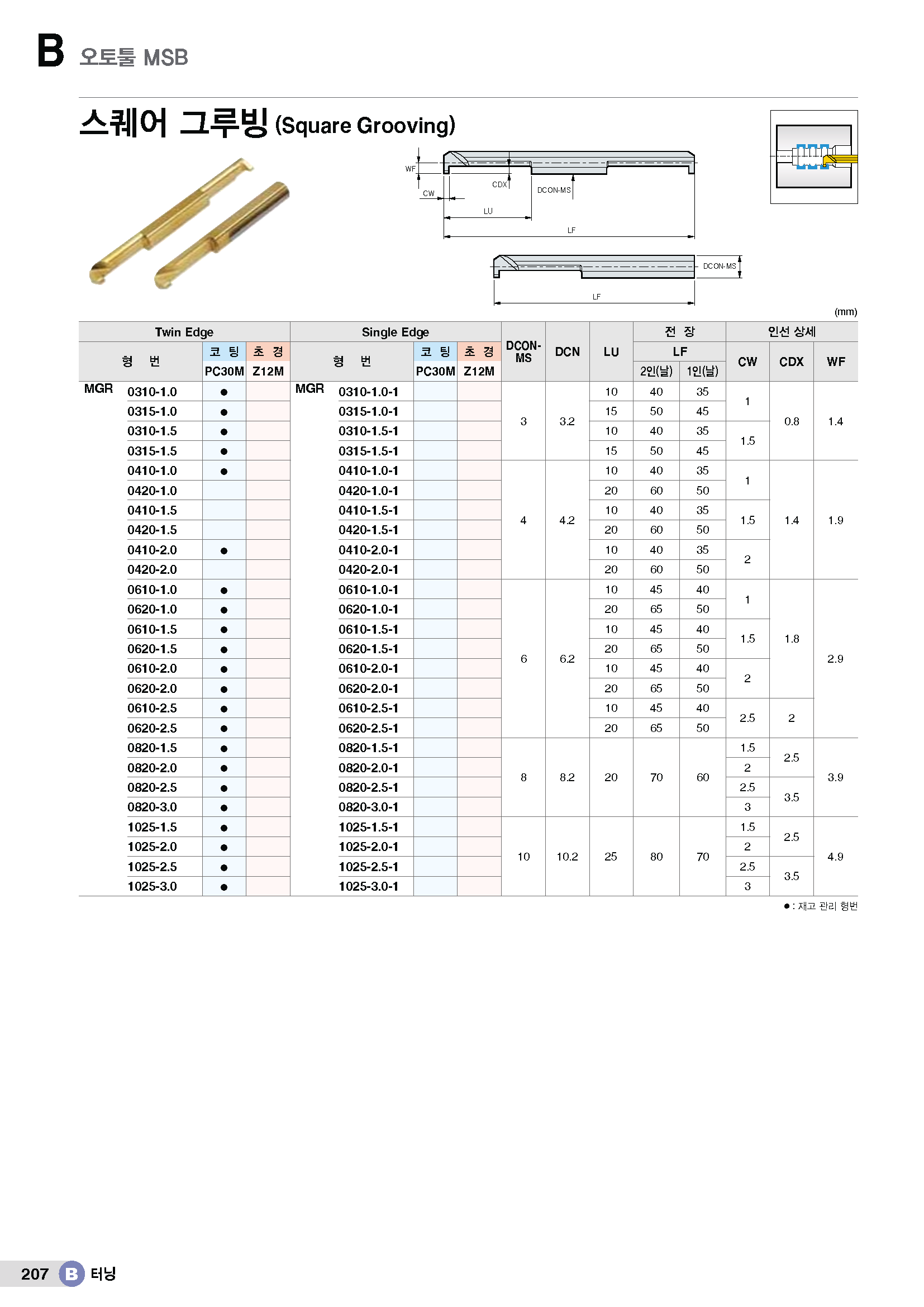 초경바 내경 홈가공(오토-턴 트윈) MGR../ KR