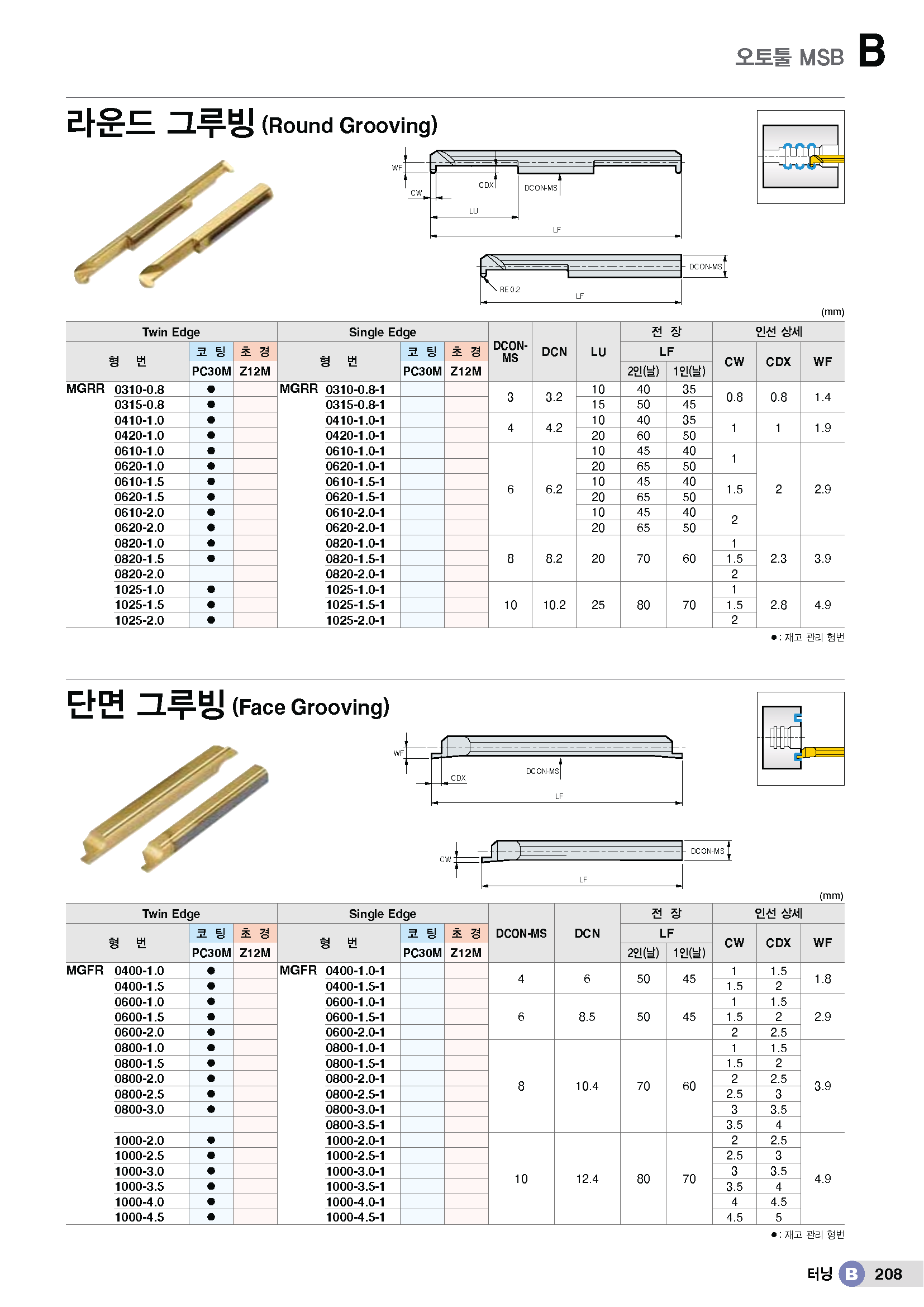 초경바 내경 R-홈가공(오토-턴 트윈) MGRR../ KR