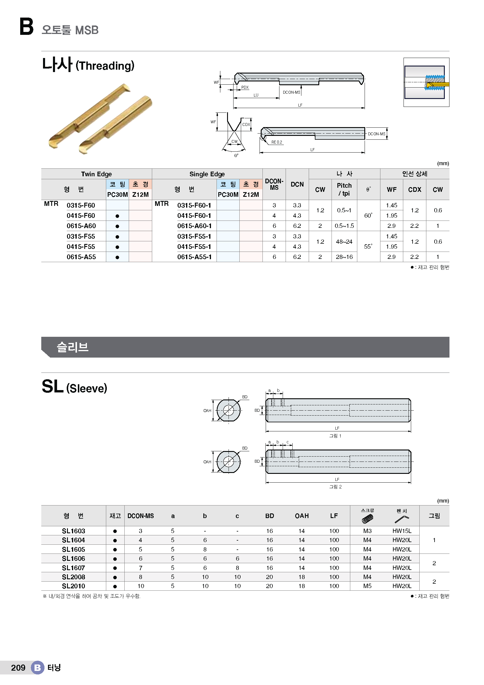 • 상품명 오토-턴 트윈 초경바/ 내경 나사가공 (슬리브 SL1604) /범용
