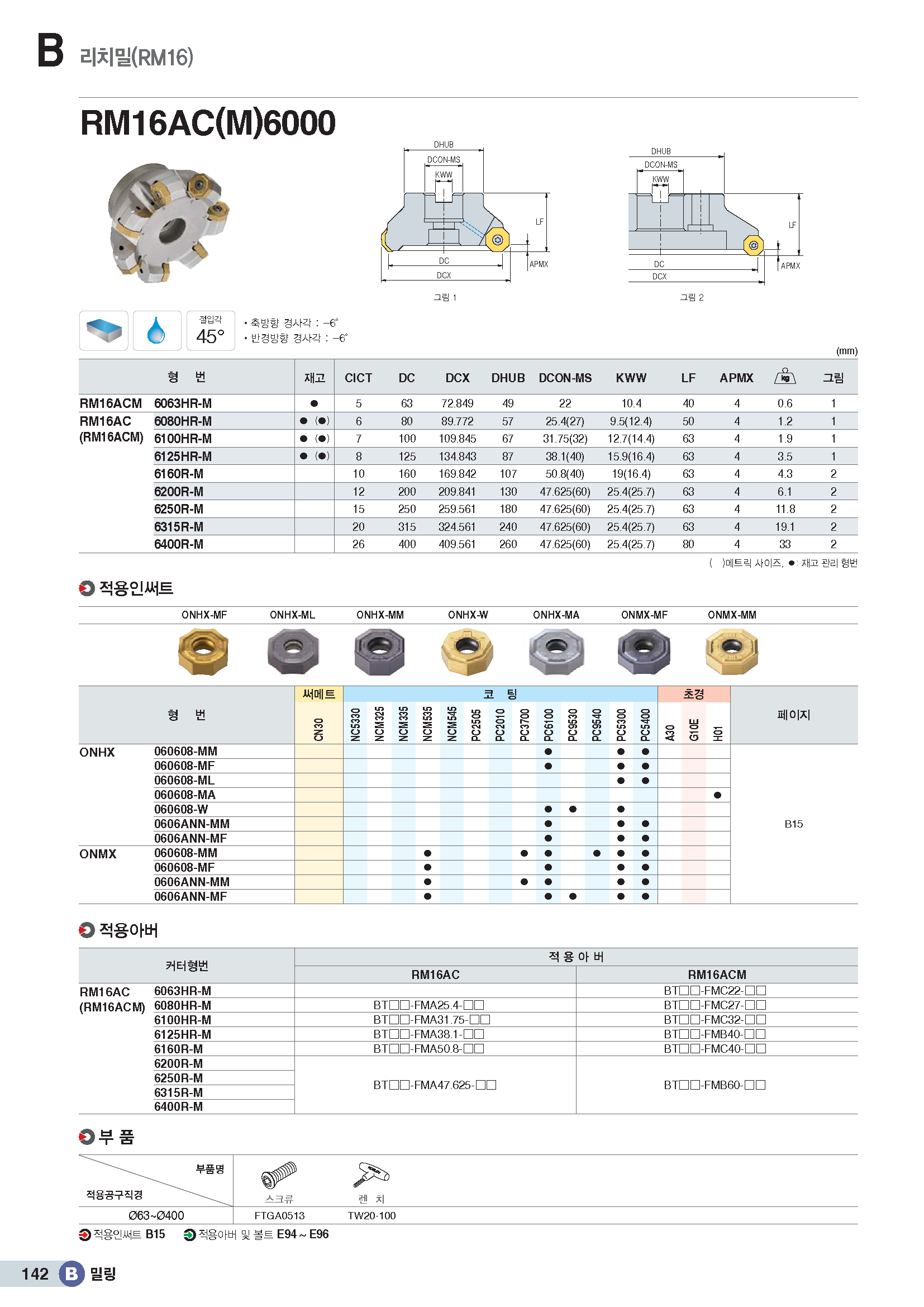 • 상품명 리치밀 45°커터 인써트(16코너)/ RM16A□6 /범용