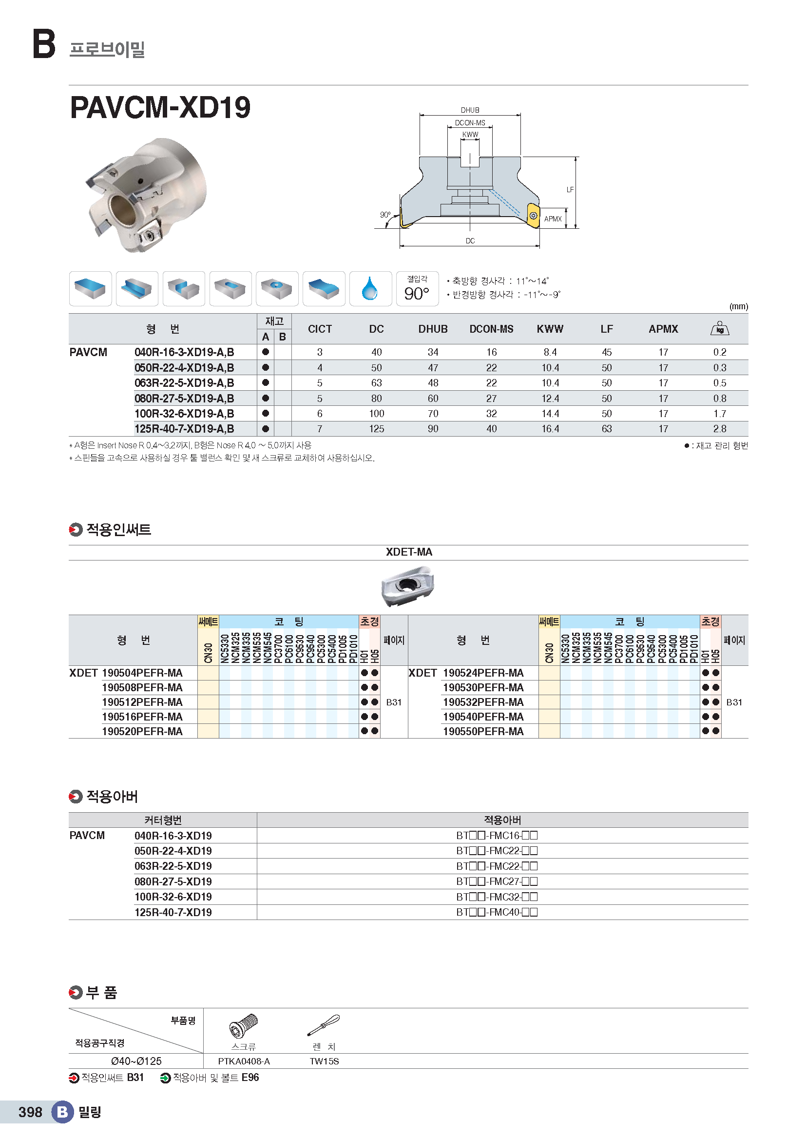 • 상품명 PRO-V 90°알루미늄전용 페이스밀 커터/ XDET1905../ 내경16