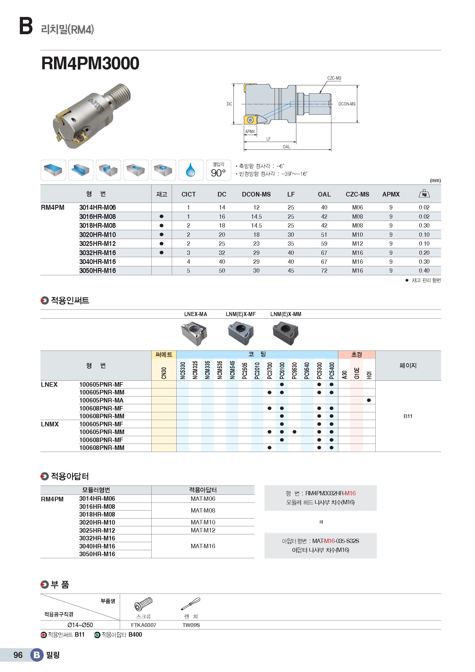 • 상품명 리치밀 90°엔드밀 커터 헤드/ LN□X1006..