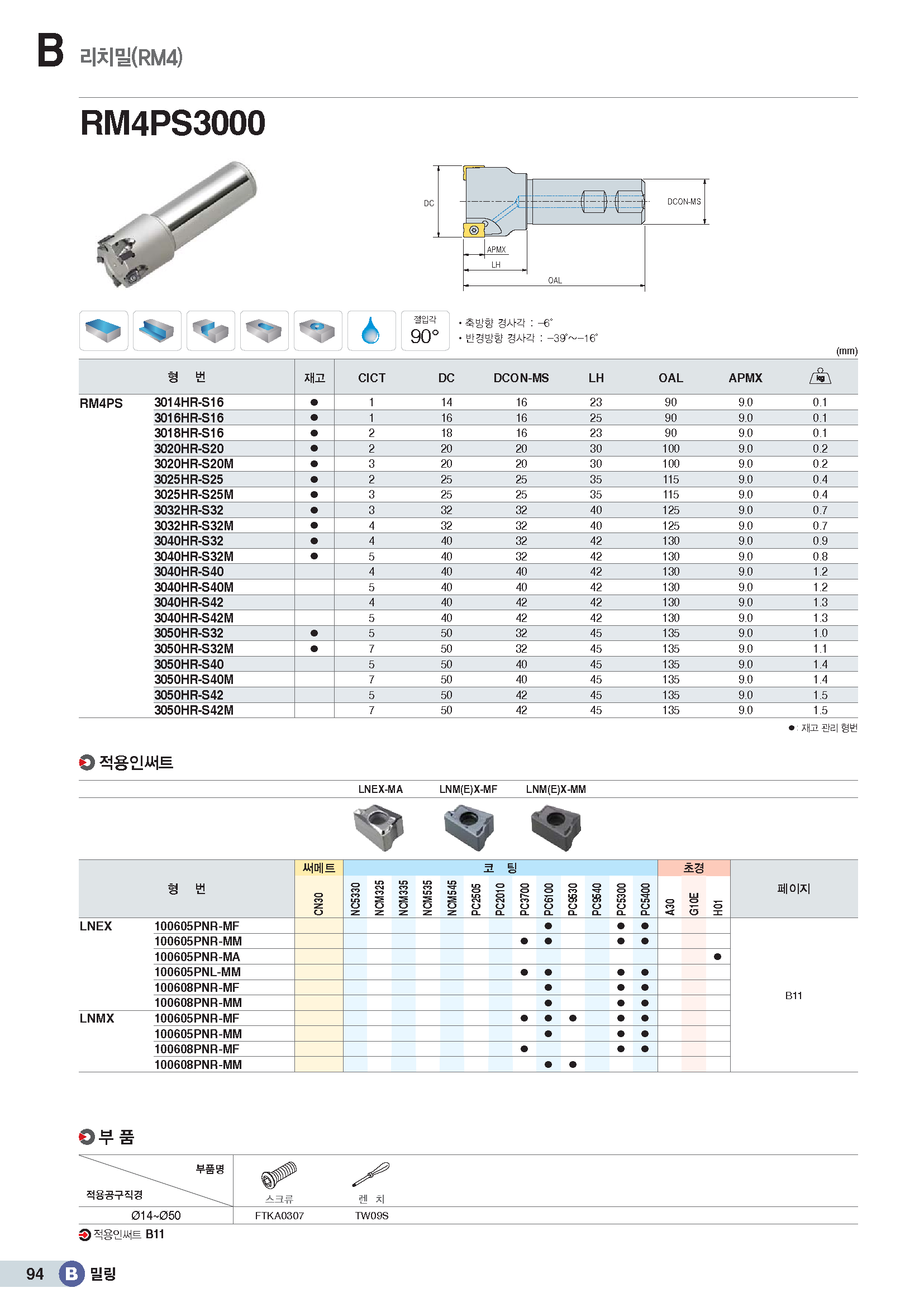90°엔드밀 커터(4코너) RM4PS../ KR